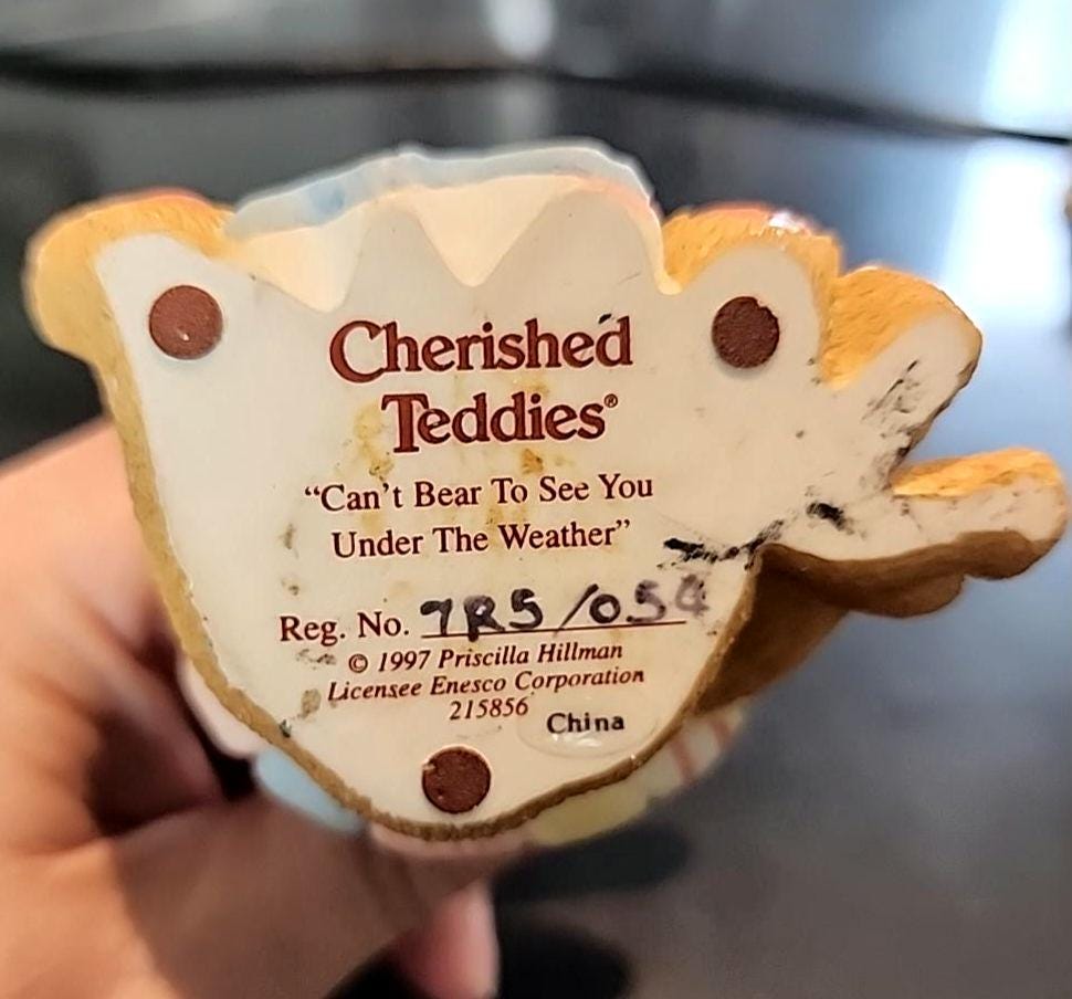 Cherished Teddies Figurine: "Can’t Bear to See You Under the Weather" Vintage Enesco Collectible