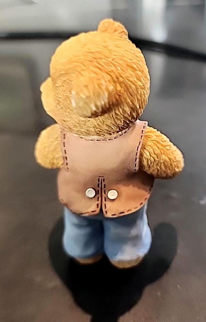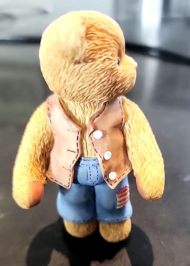 Add a touch of charm to your collection with this Cherished Teddies 2000 figurine – Bear in Jeans and Brown Vest (#706973).