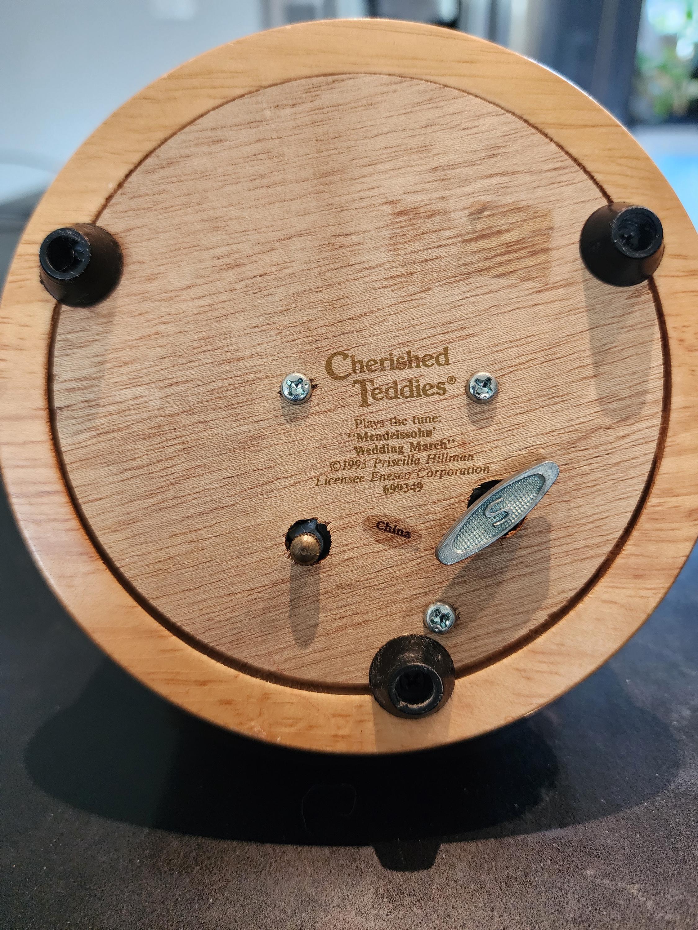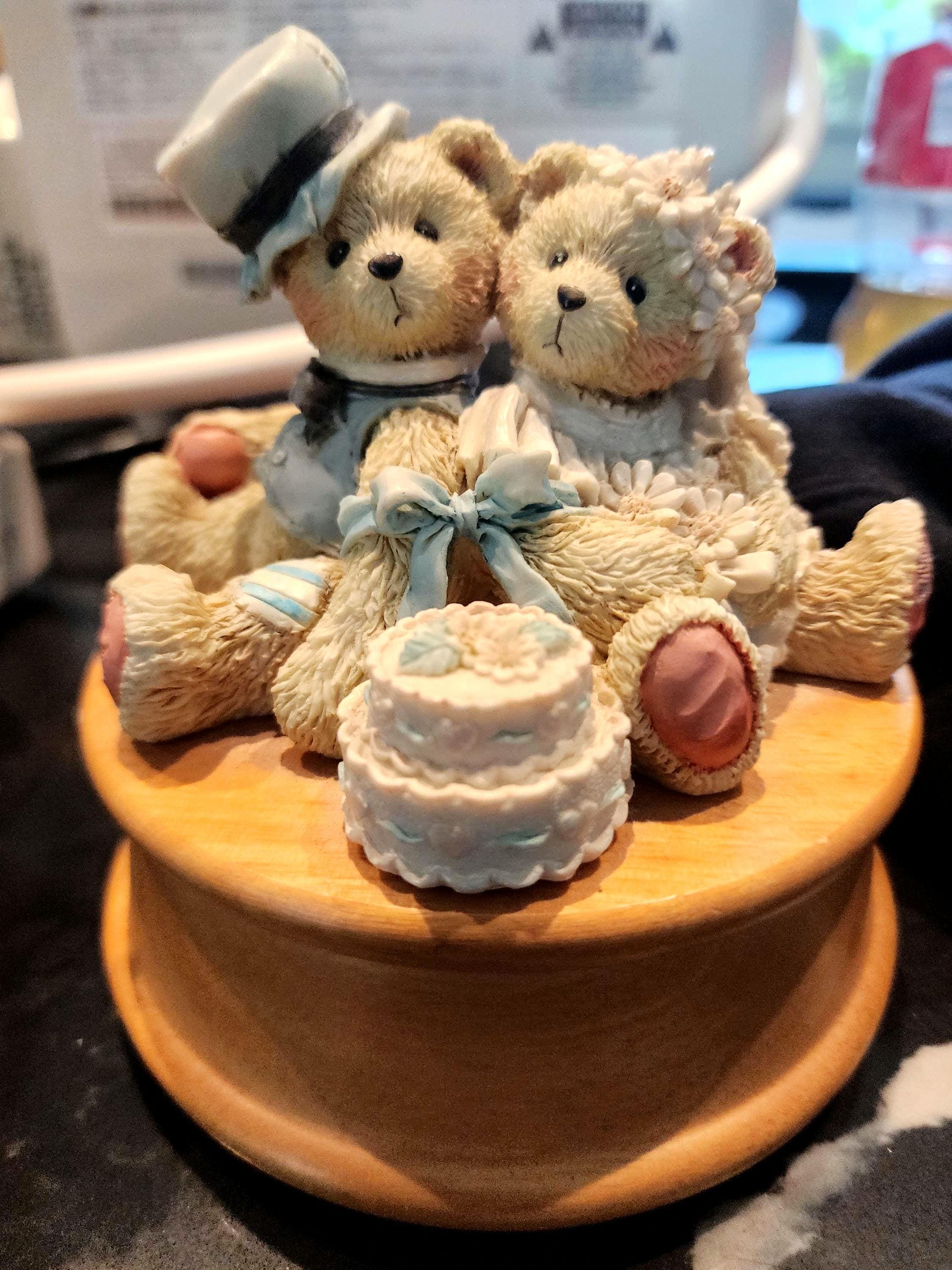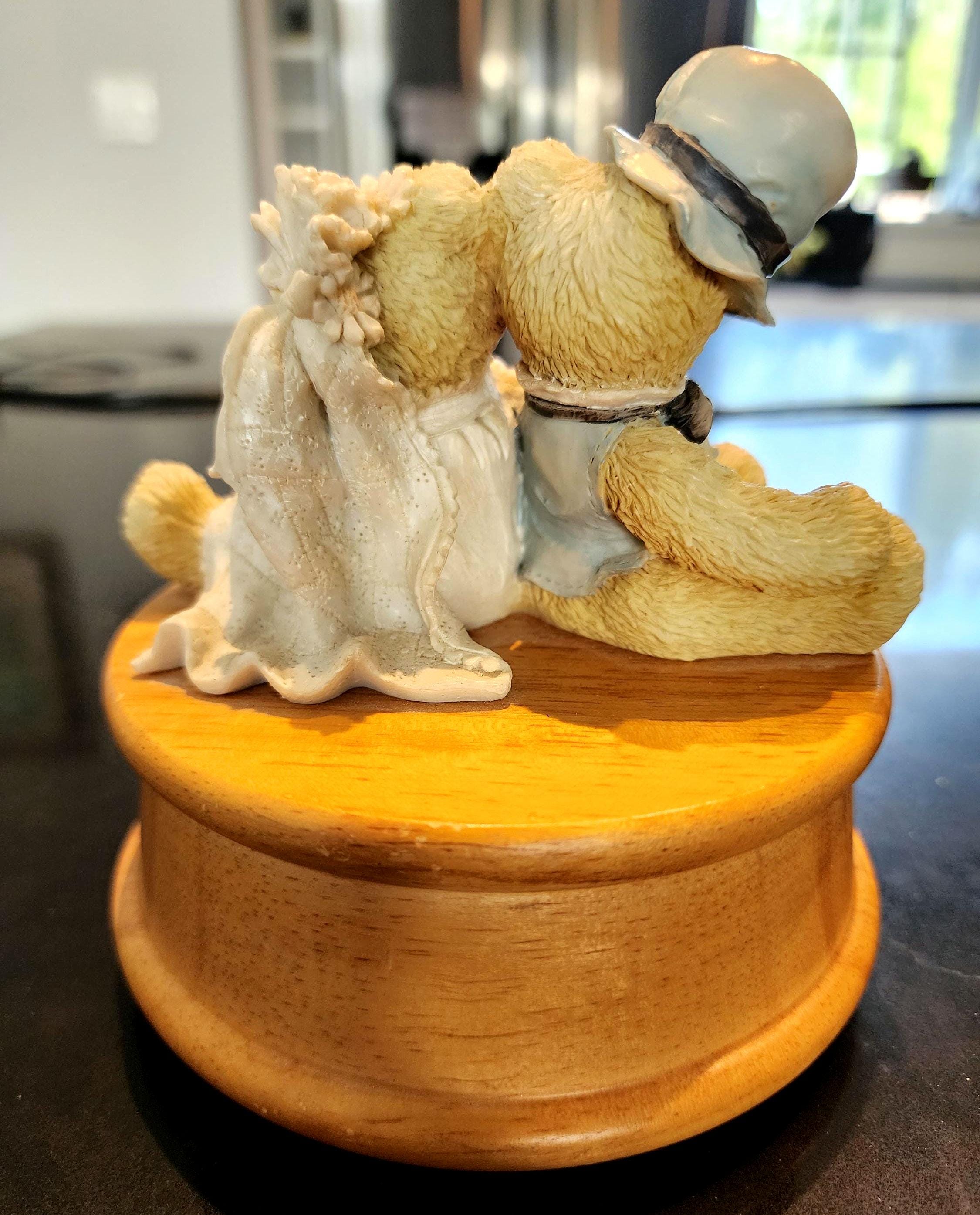 Celebrate love and special moments with this Cherished Teddies Wedding Bears Music Box, featuring a cute bride and groom bear couple and playing Mendelssohn’s Wedding March.