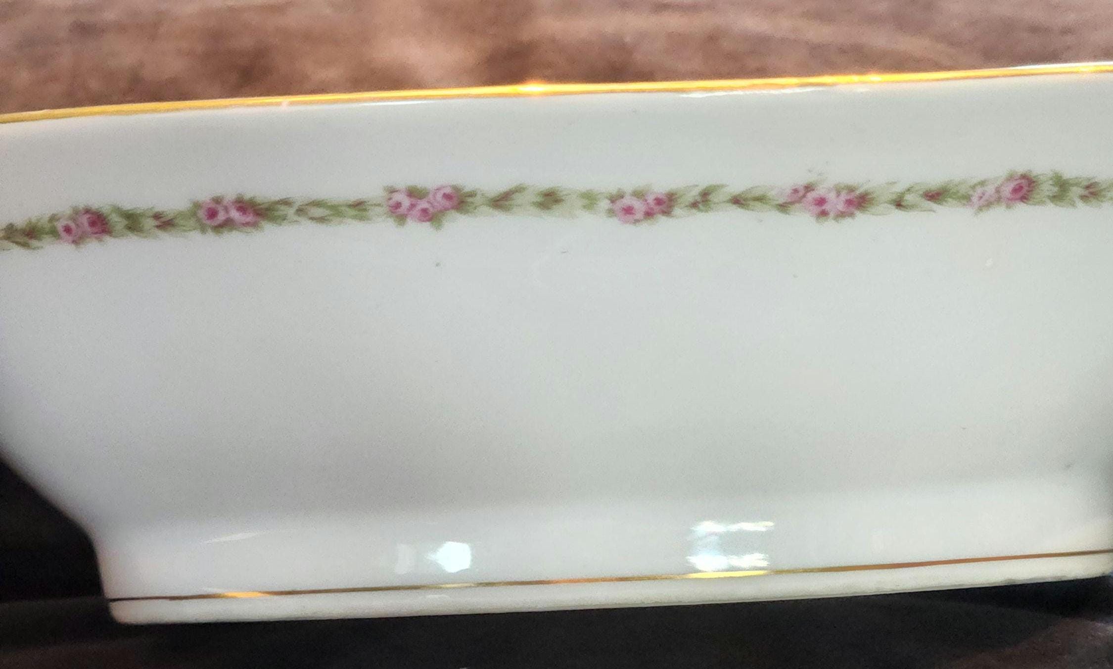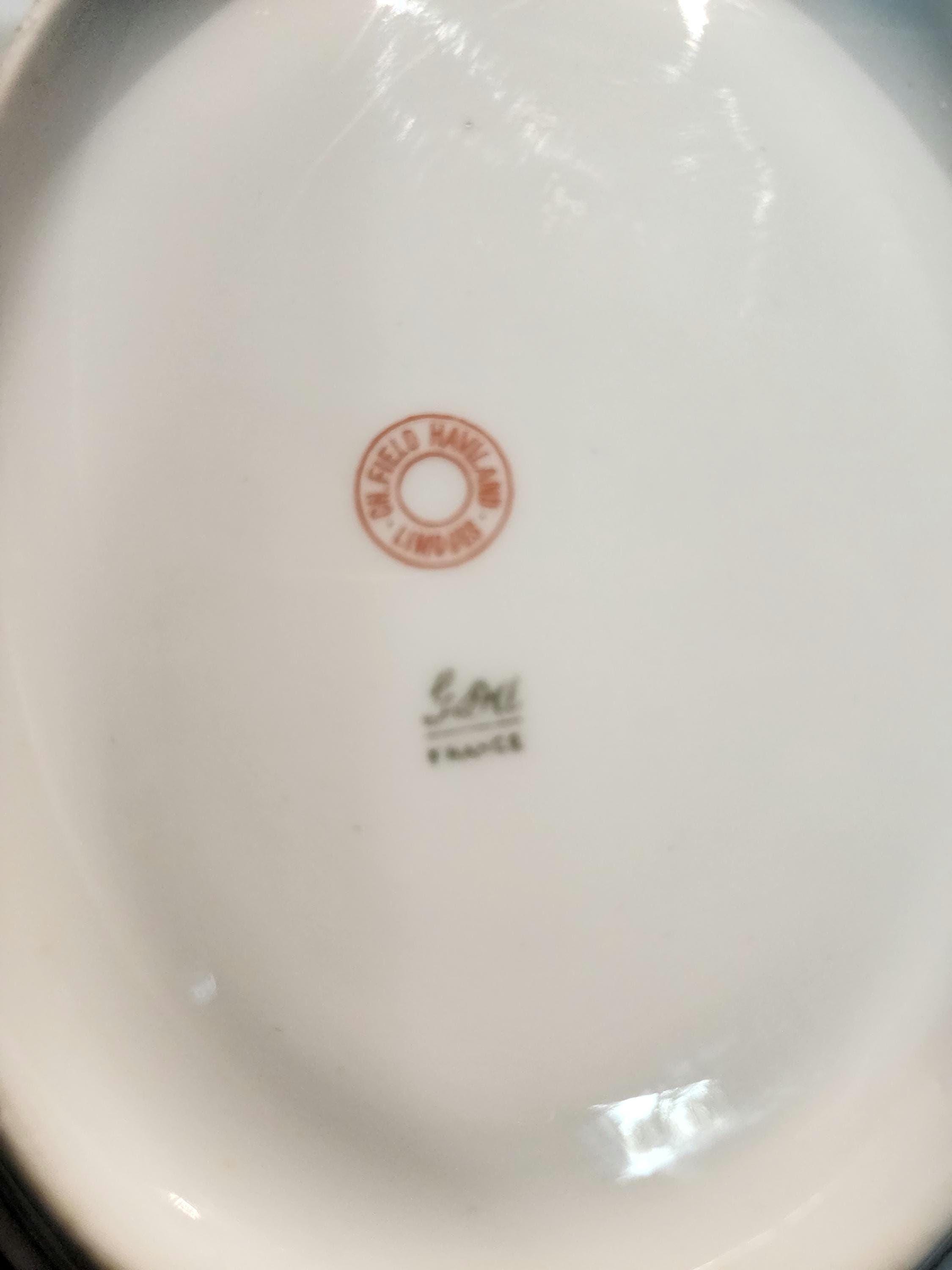 Add timeless elegance to your table with this vintage C.H. Field Haviland Limoges serving bowl, decorated by GDA (Gerard, Dufraisseix & Abbot), a renowned Limoges porcelain studio. This exquisite piece features a delicate floral pattern with hand-applied gold trim, showcasing the craftsmanship of late 19th to early 20th century French porcelain.