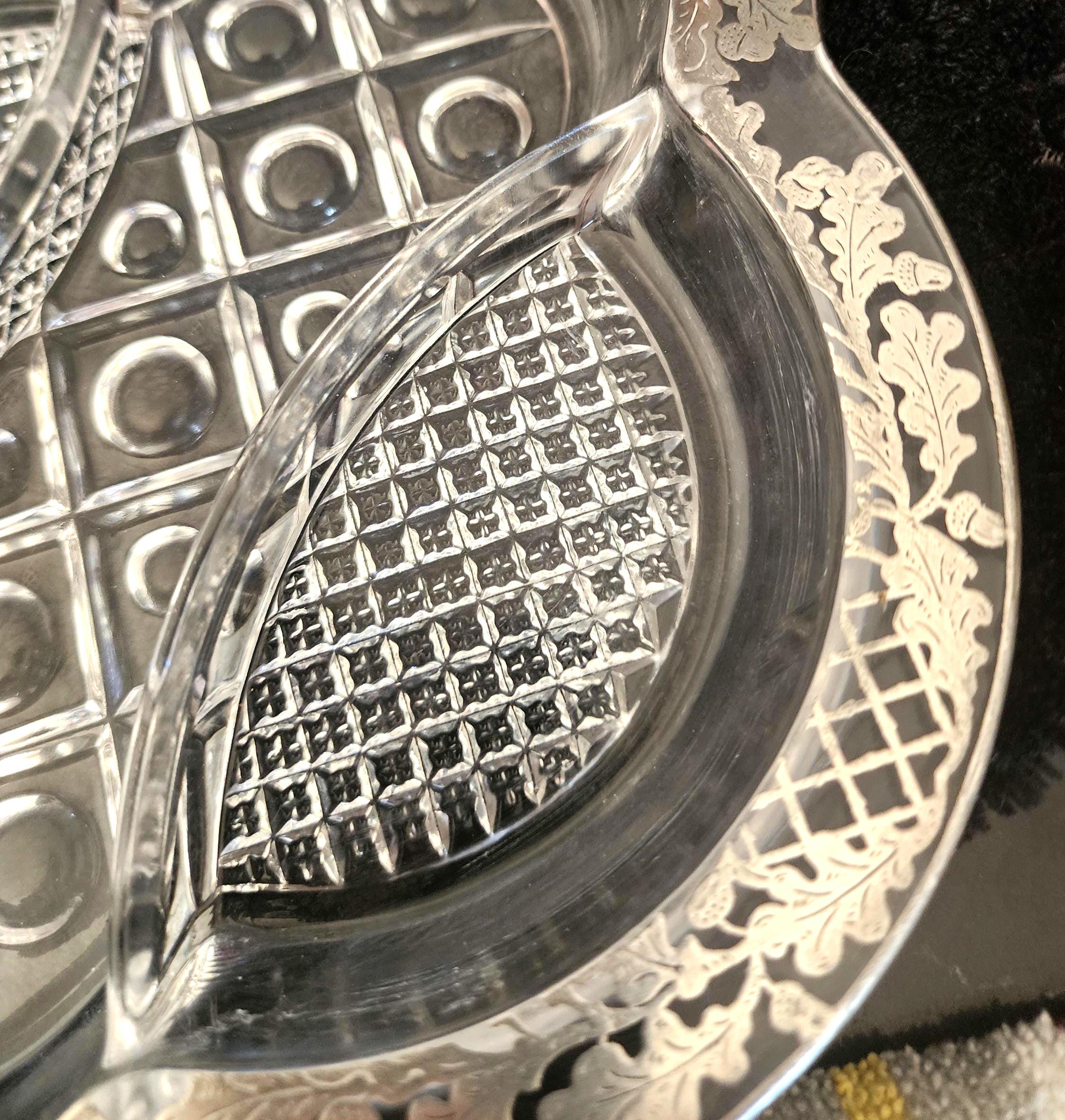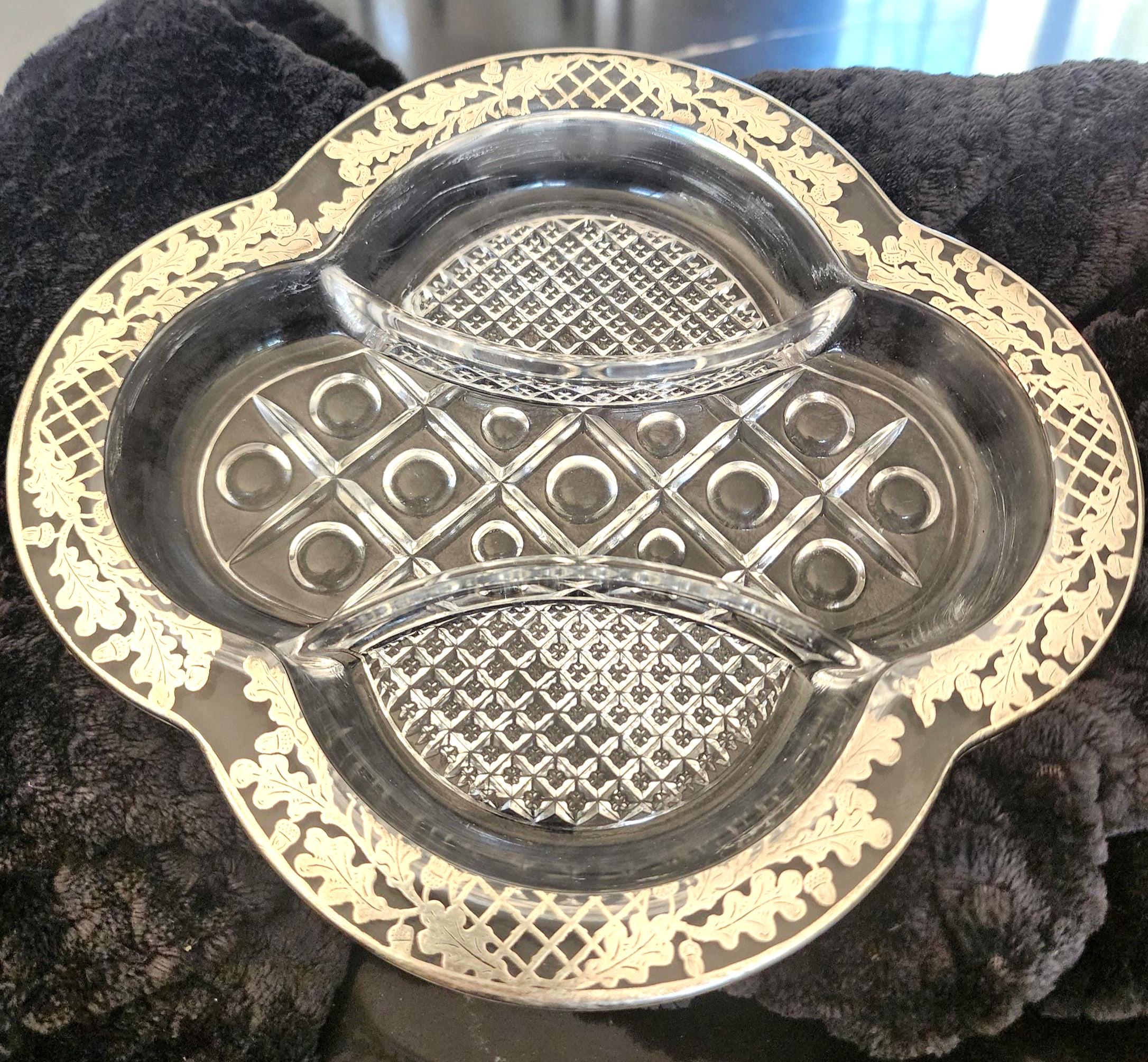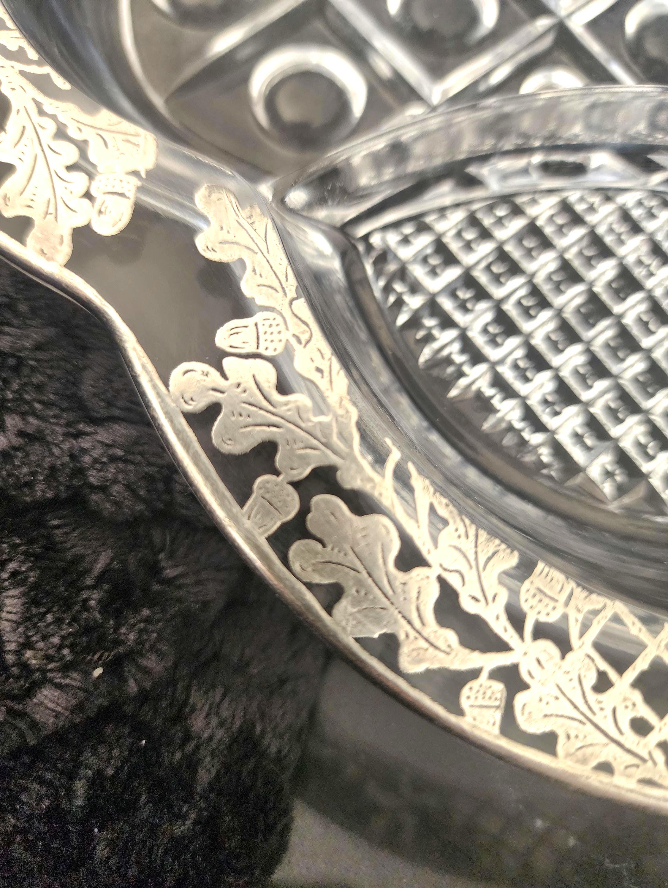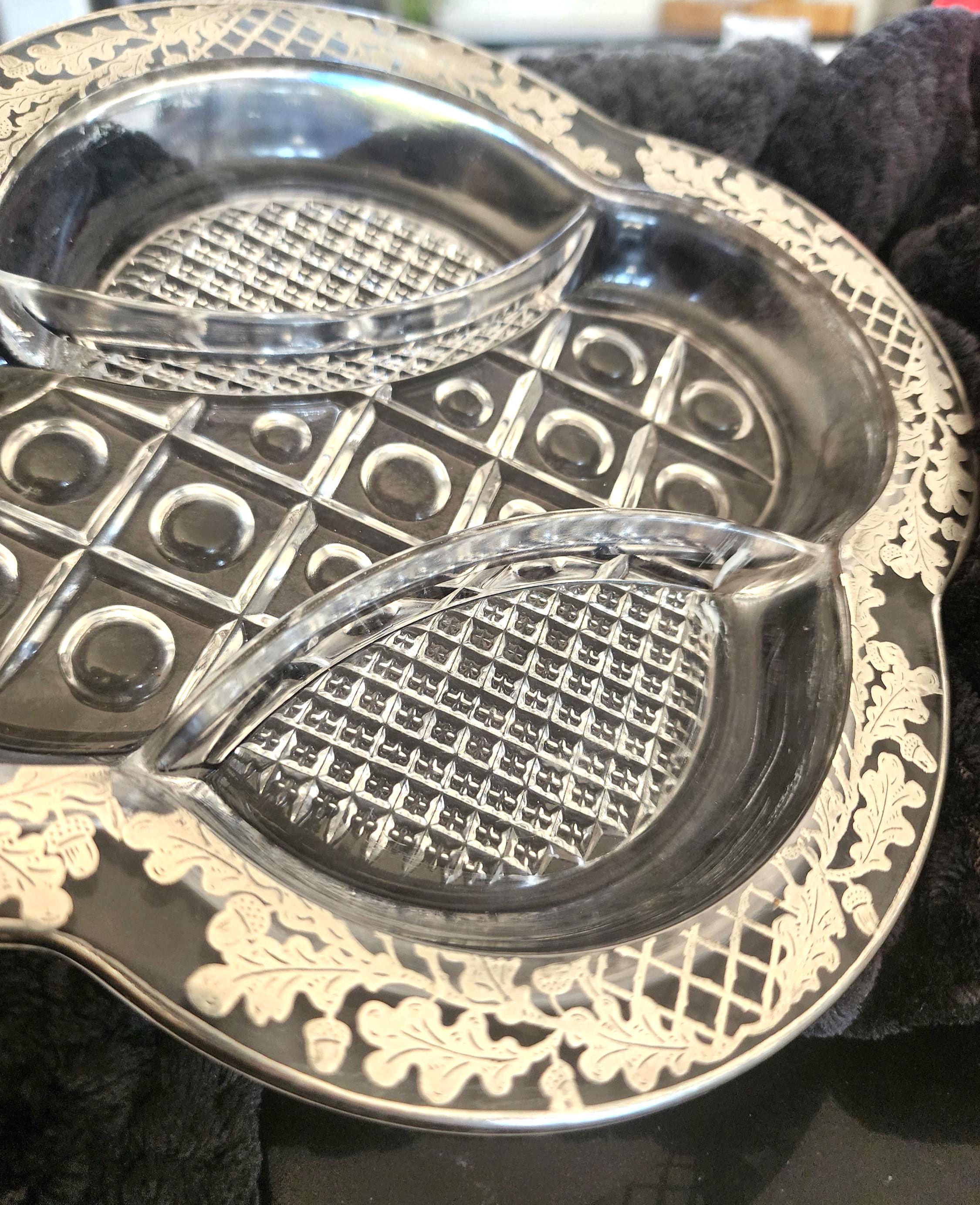 Vintage Acorn Silver Overlay Glass Divided Dish – Elegant Shiny Serving Dish