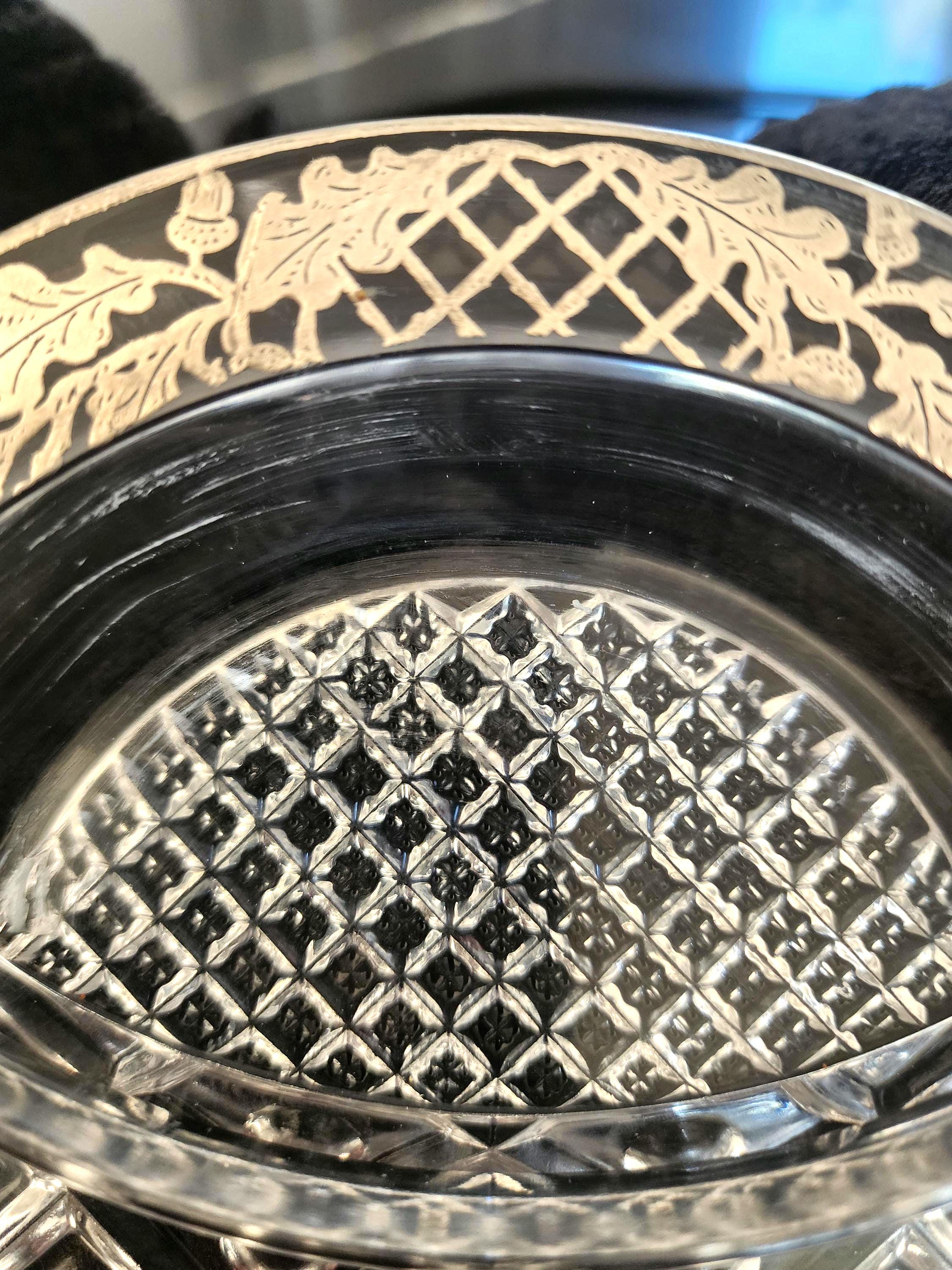 Its classic glass clarity paired with delicate silver artistry makes it both functional and decorative, ideal for entertaining or as a collectible display piece.