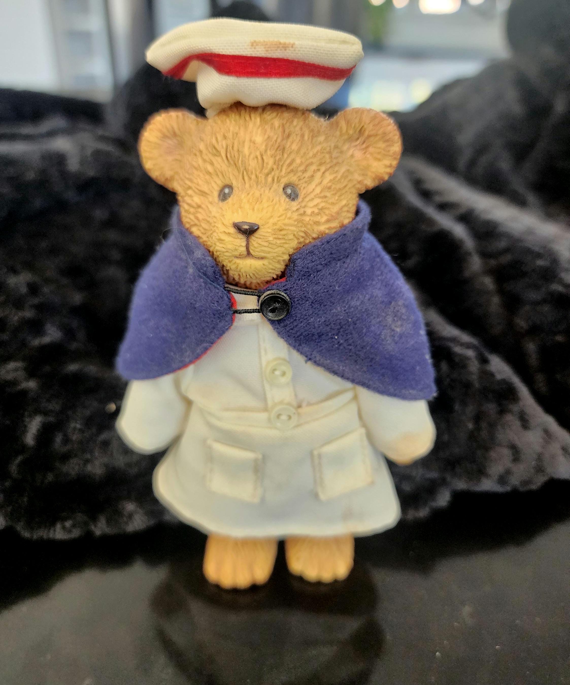 Bring a touch of nostalgia to your collection with this charming Russ “Town Bear” nurse figurine. Made of durable resin, this detailed collectible features the classic Russ bear dressed in a nurse uniform, complete with crisp apron and cap.