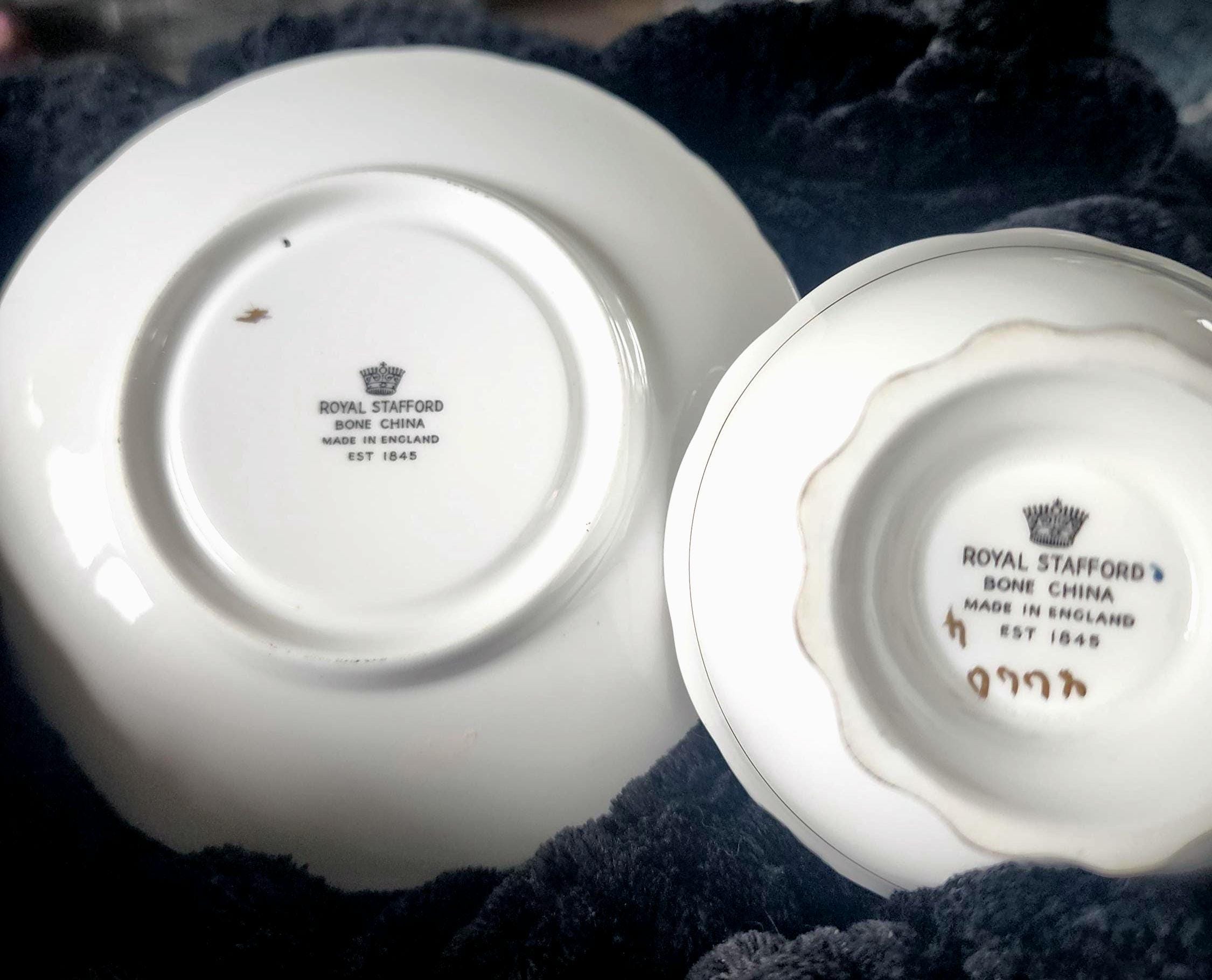 Experience timeless elegance with this exquisite Royal Stafford bone china cup and saucer set. Crafted by the renowned English pottery company established in 1843, each piece is made from fine bone china, celebrated for its delicate, translucent quality and luxurious feel.