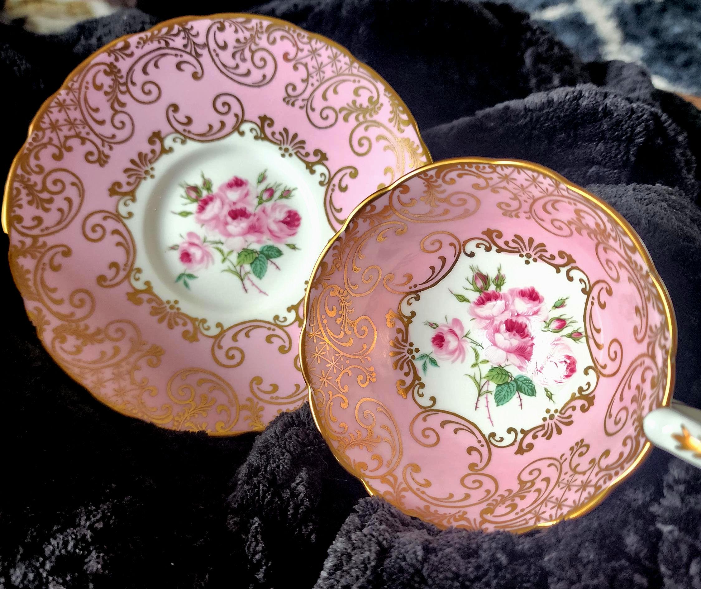 Royal Stafford Bone China Pink Rose Tea Cup & Saucer Set Gold Trim English Vintage