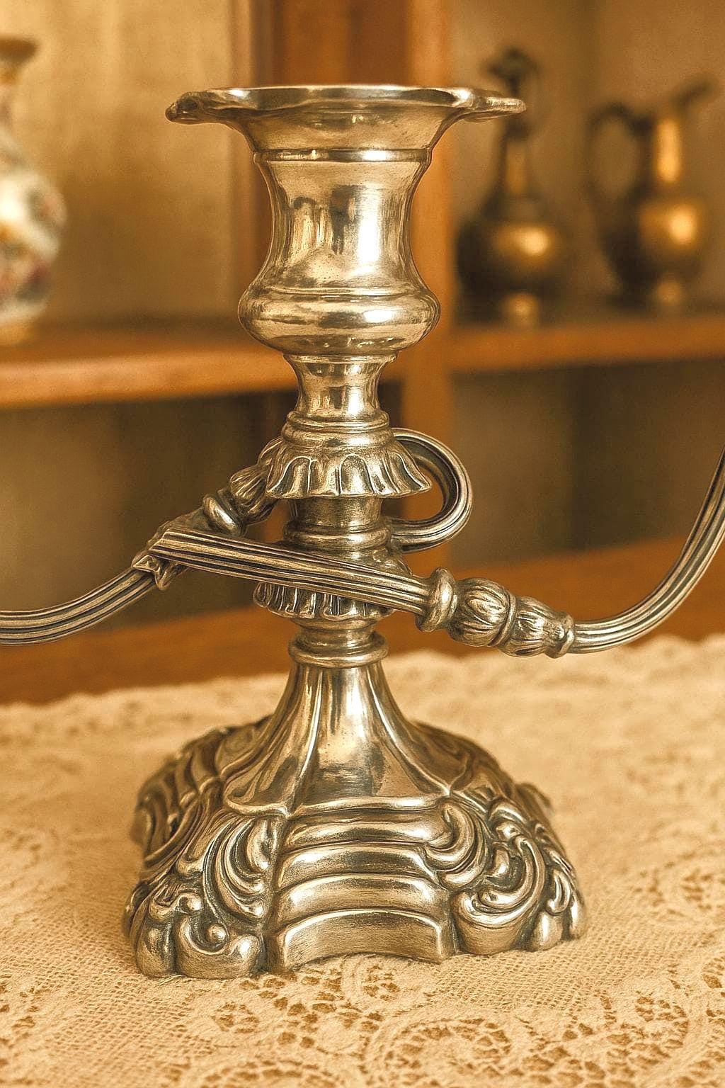 Add a touch of Victorian elegance to your home with this vintage 3-arm twisted candelabra, crafted from solid metal with EP (Electroplated) Silver Lead finish. Designed to hold taper candles, this decorative piece reflects the classic style popular in the late 19th to early 20th century (circa 1880–1920). Perfect as a mantelpiece centerpiece, dining table accent, or collectible décor, it brings timeless charm and sophistication to any setting. Ideal for weddings, romantic dinners, or vintage décor enthusiasts.