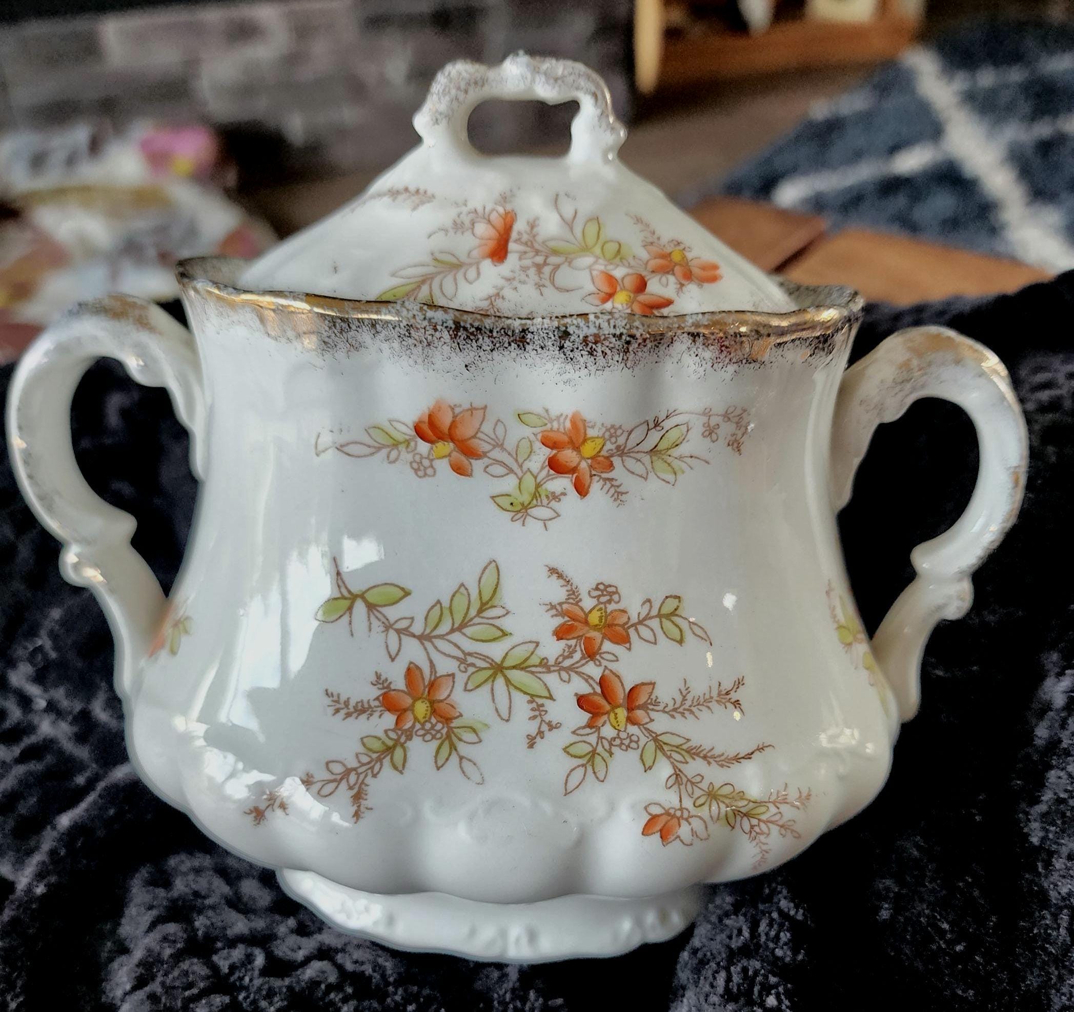 This is a rare and hard-to-find J&G Meakin Hanley sugar bowl, stamped with pattern #32, dating from the 1940s–1960s. Made in England.