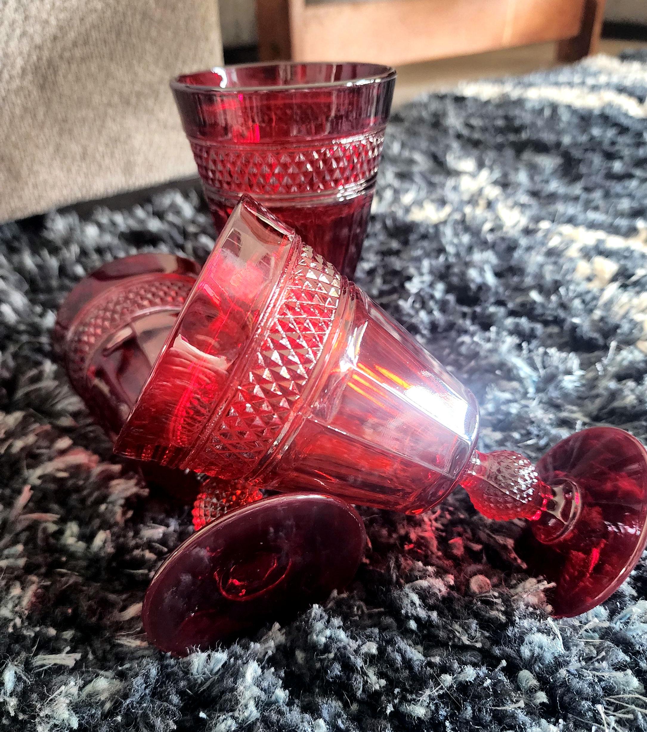 Vintage Viking Glass “Mt. Vernon” Ruby Red Goblet – Collectible Mid-Century American Glassware