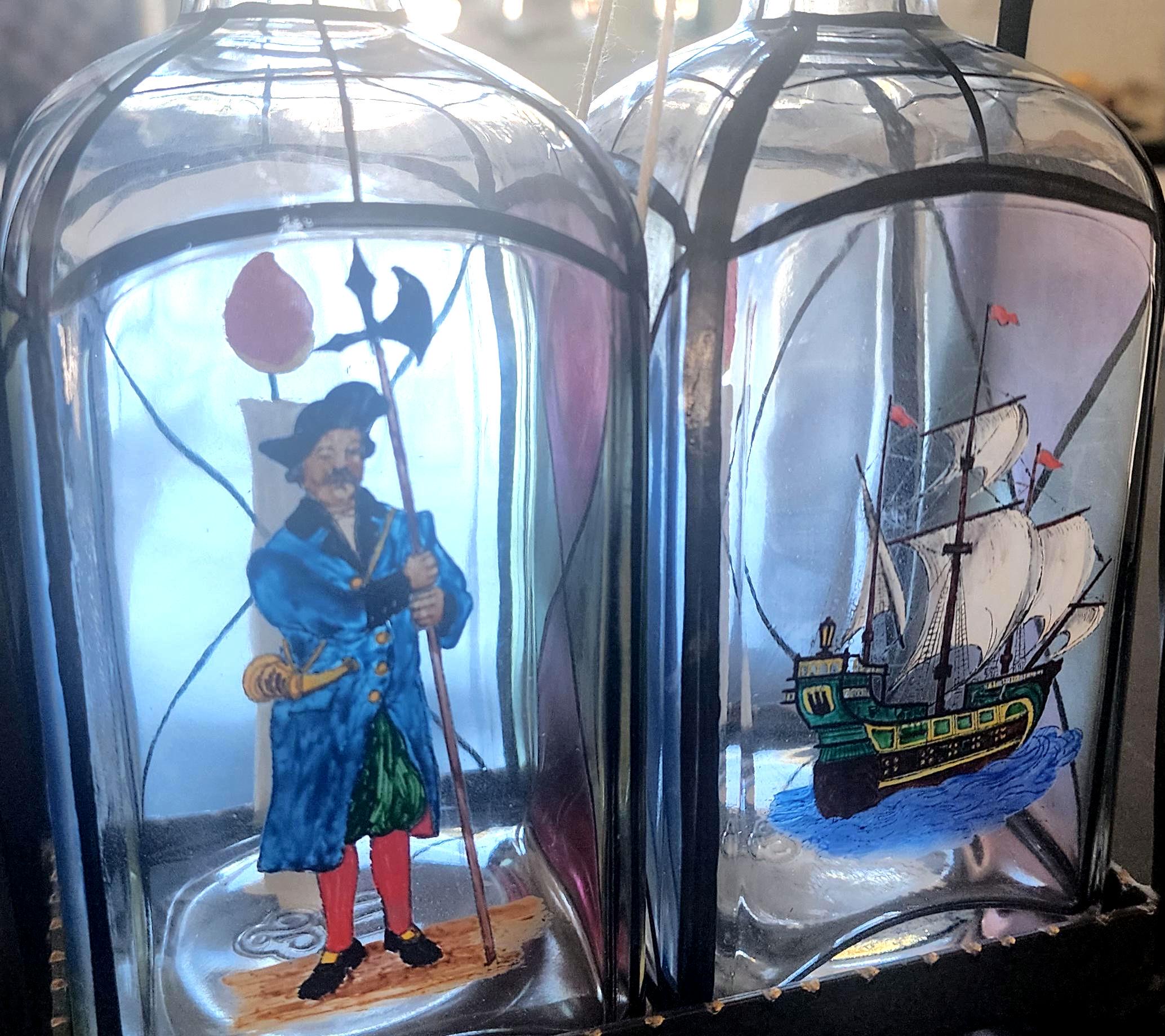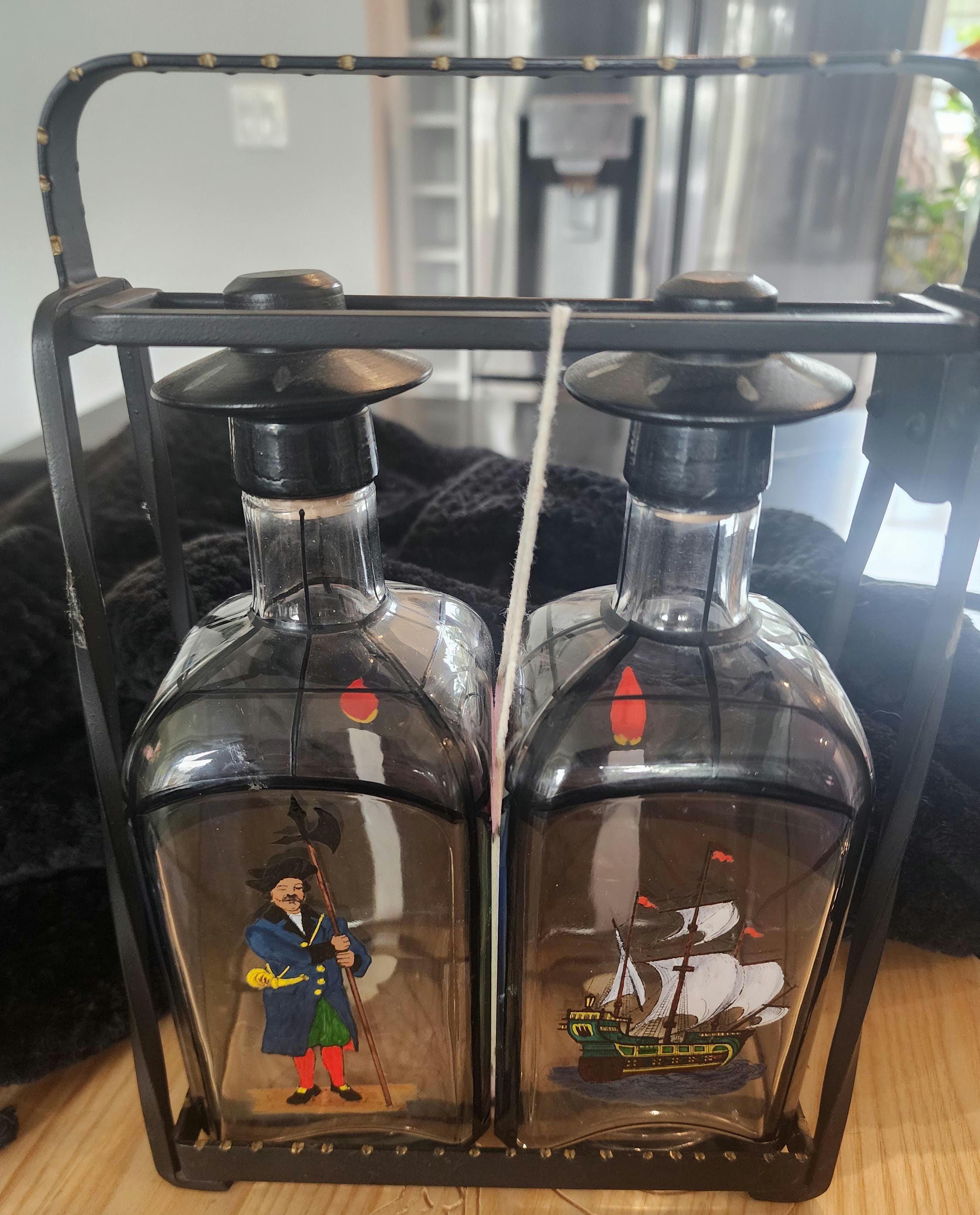 Vintage Hand-Painted Austrian Decanter Set: Famosa LPW Vienna Ship & Sailor