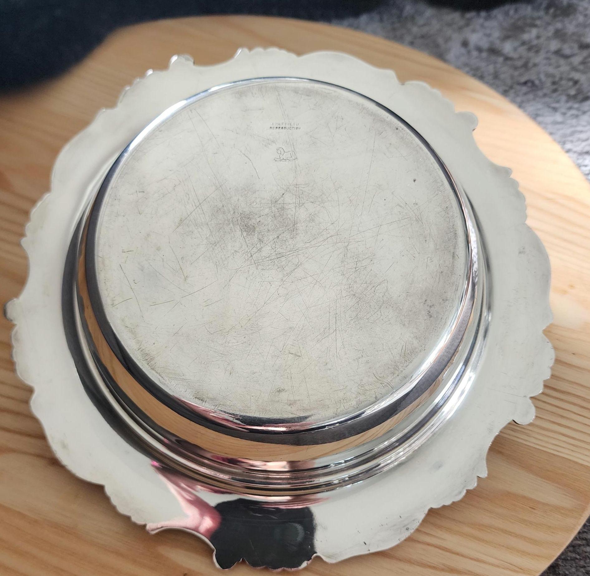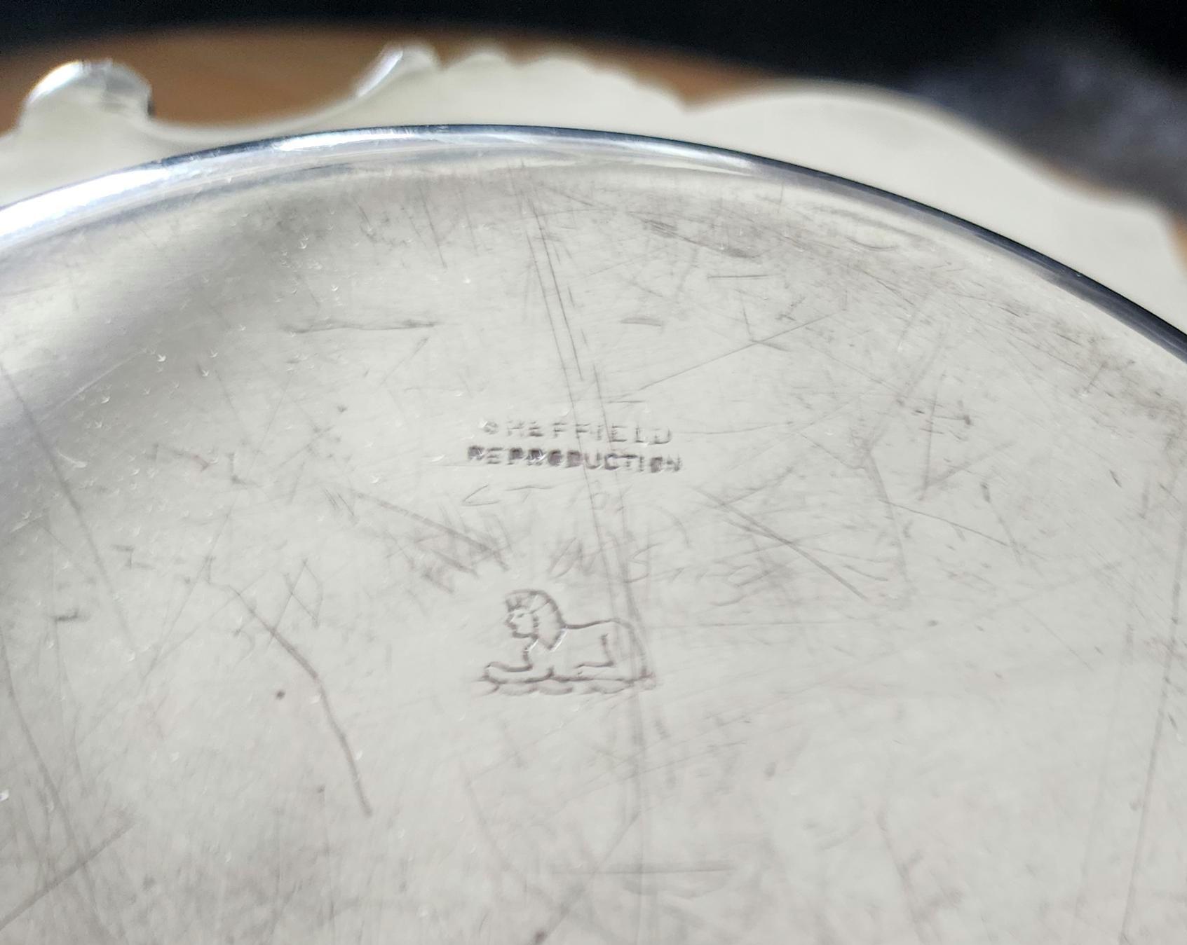 Stamped “Sheffield Reproduction” with the classic lion hallmark, this piece reflects mid-20th-century craftsmanship inspired by the historic Sheffield silver workshops of England.