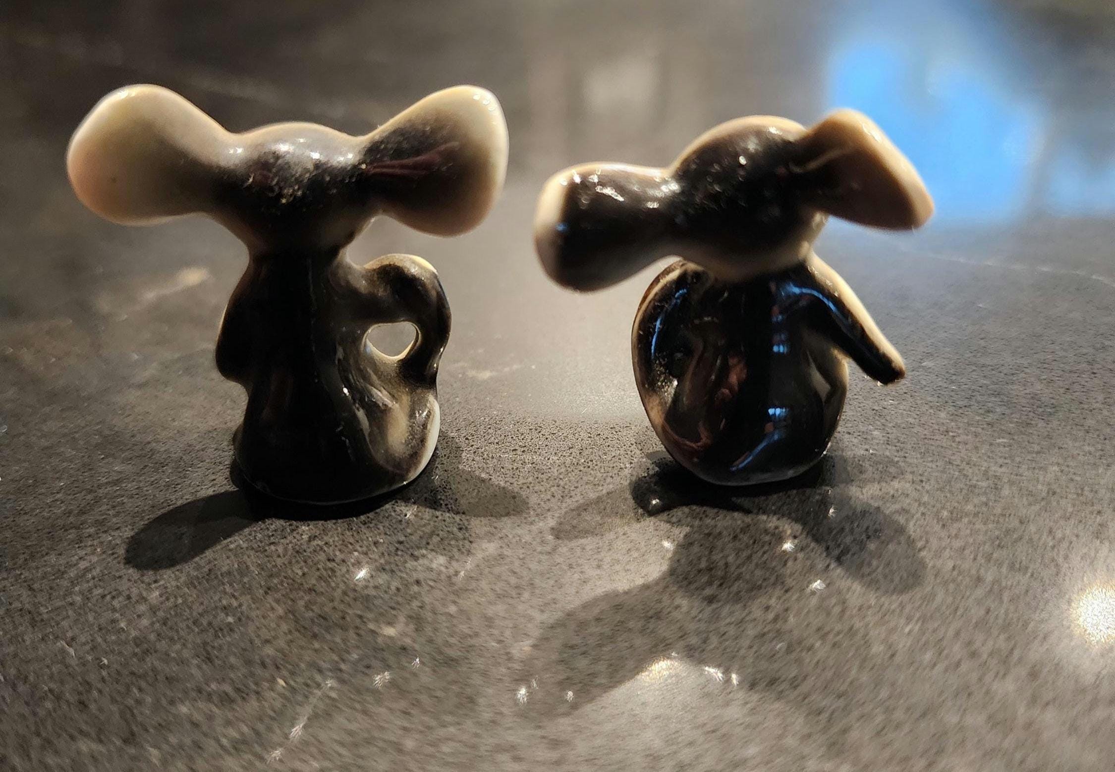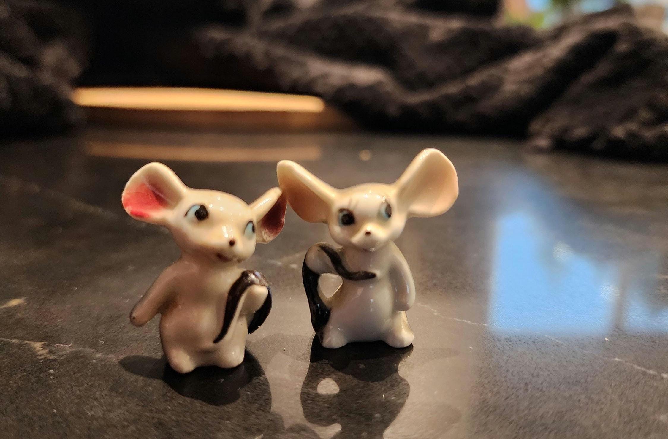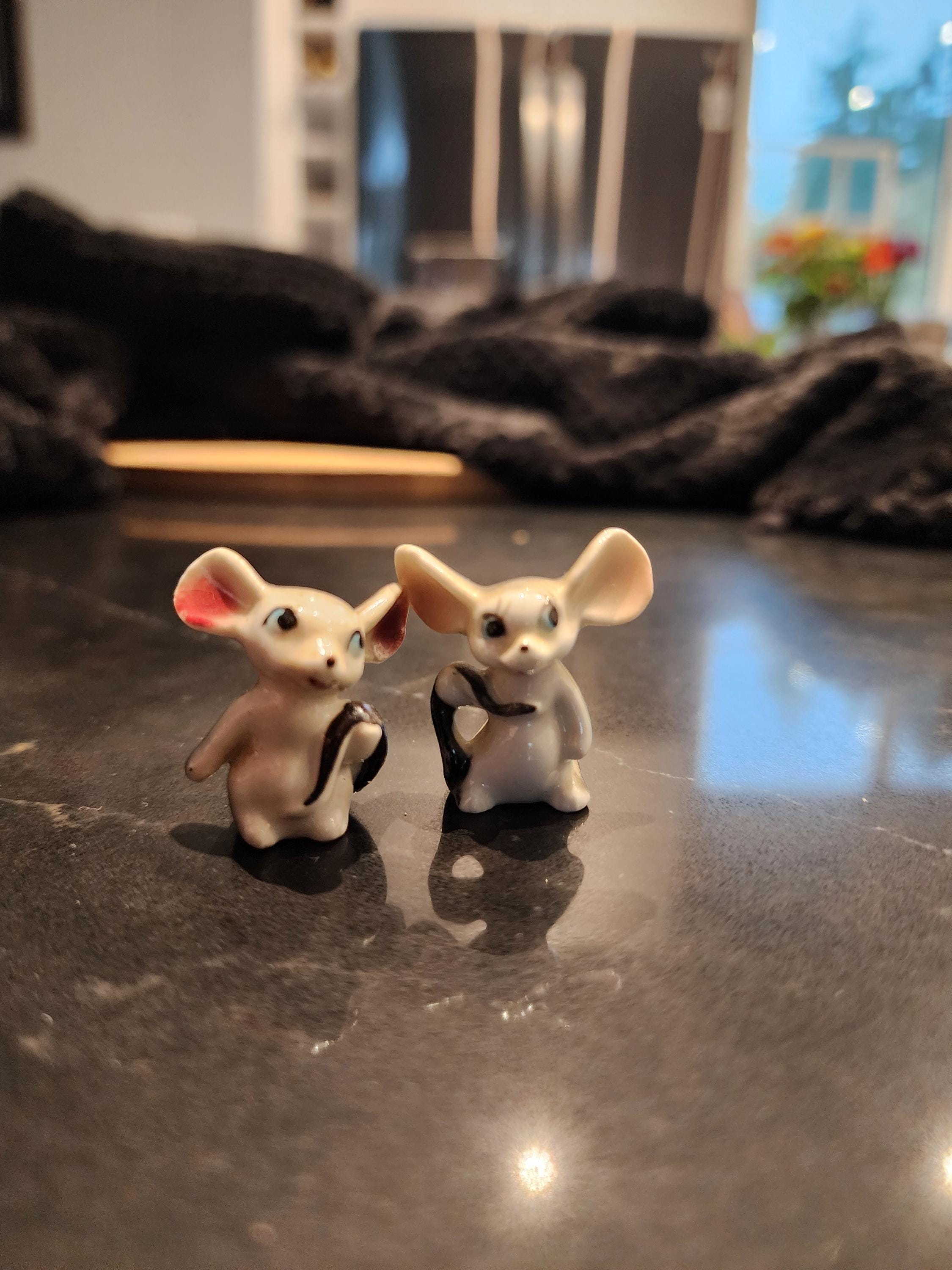 • 2 hand-painted porcelain mice – approx. 1" tall