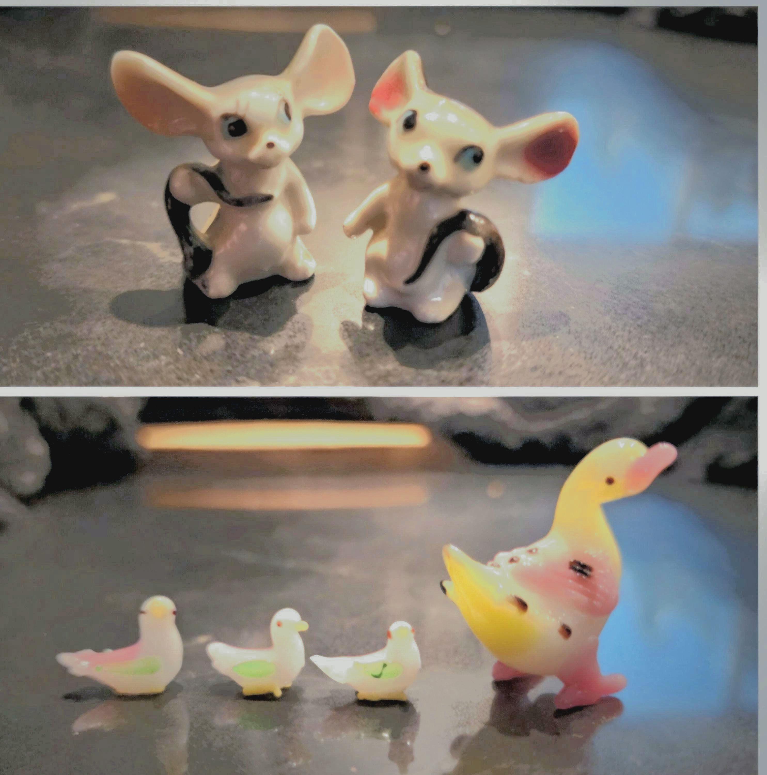 Vintage Miniature Porcelain Animal Figurines: Japan Whimsies Mice & Duck Family Set