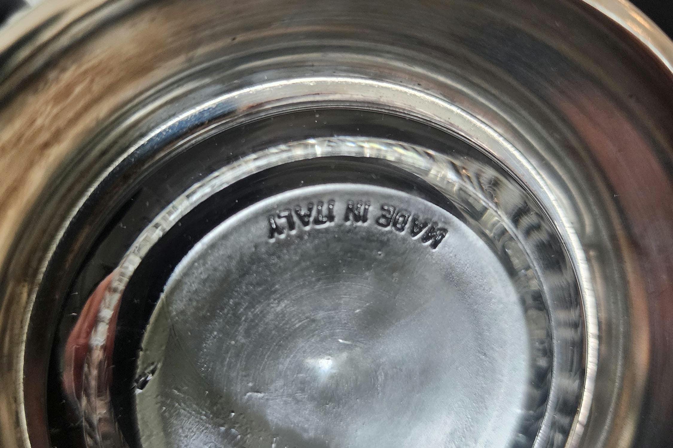 Condition: Excellent vintage condition — crystal is clear and bright with no chips or cracks; silver base has a mirror shine.
