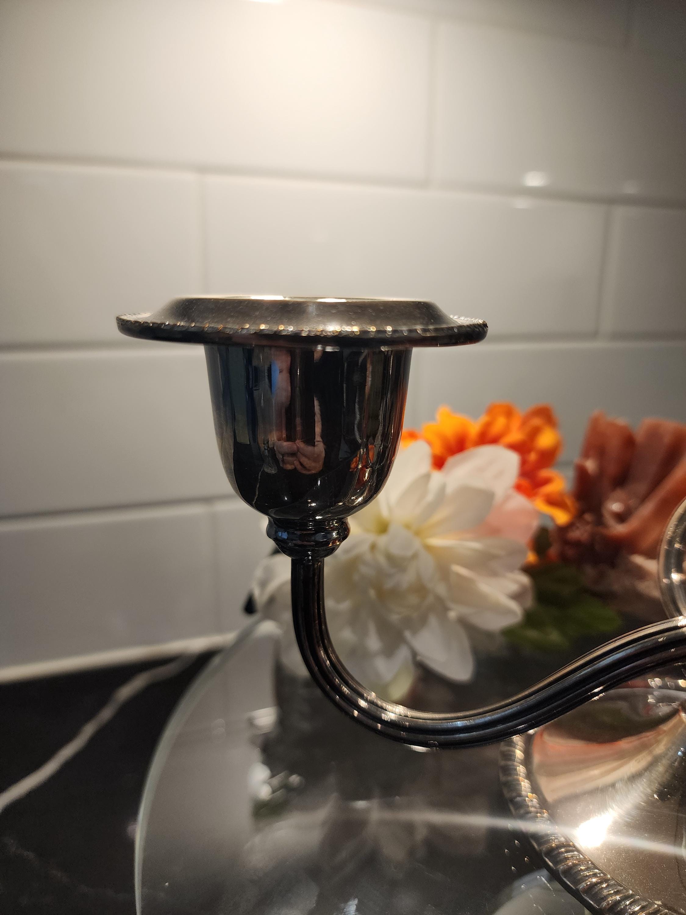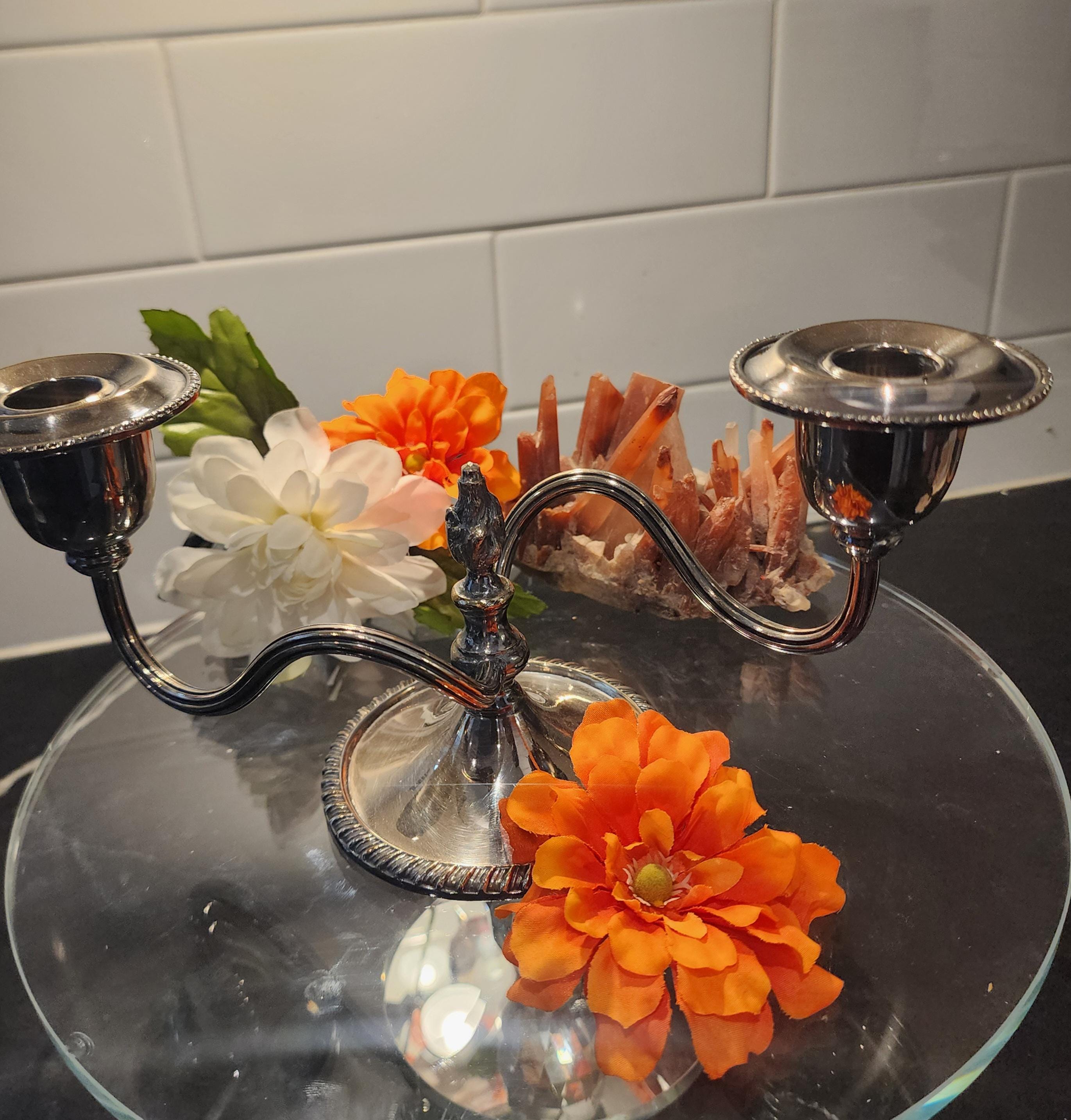 Vintage Silver-Plated Double Arm Candelabra | Georgian Style | Rope Edge Silver Candle Holder