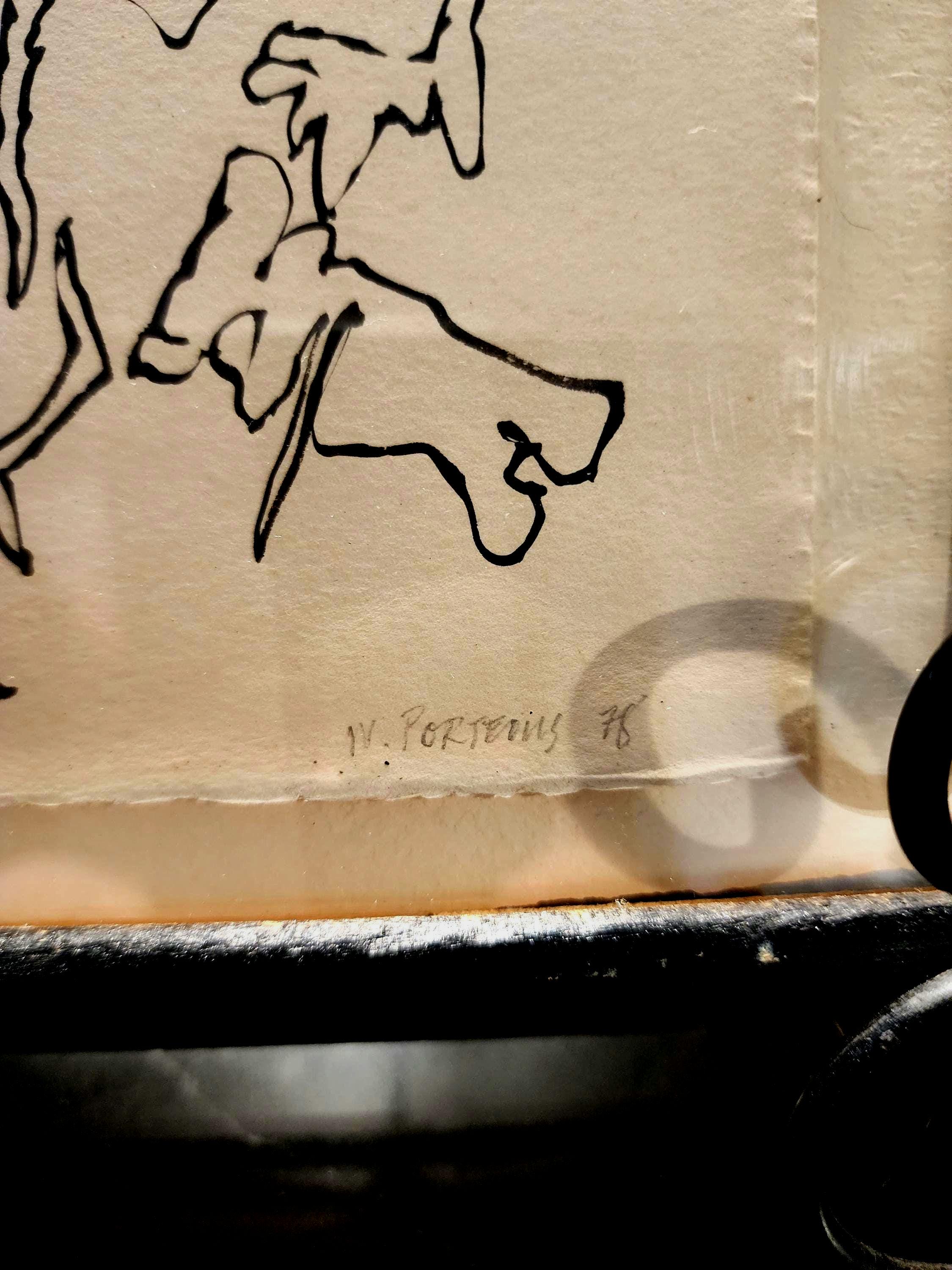 An authentic 1978 original ink drawing signed W. Porteous — a rare and expressive example of late-1970s Canadian modernist art.