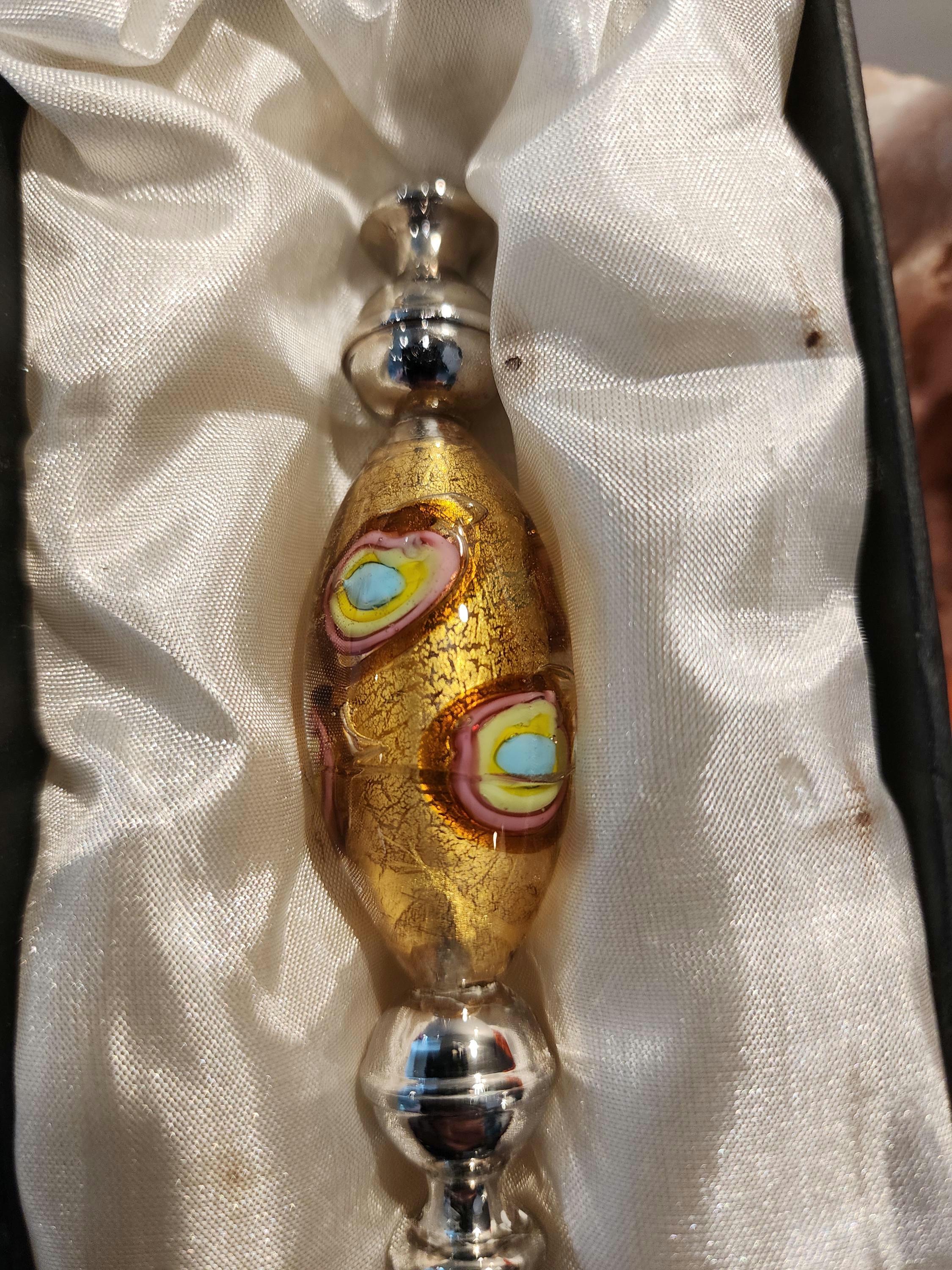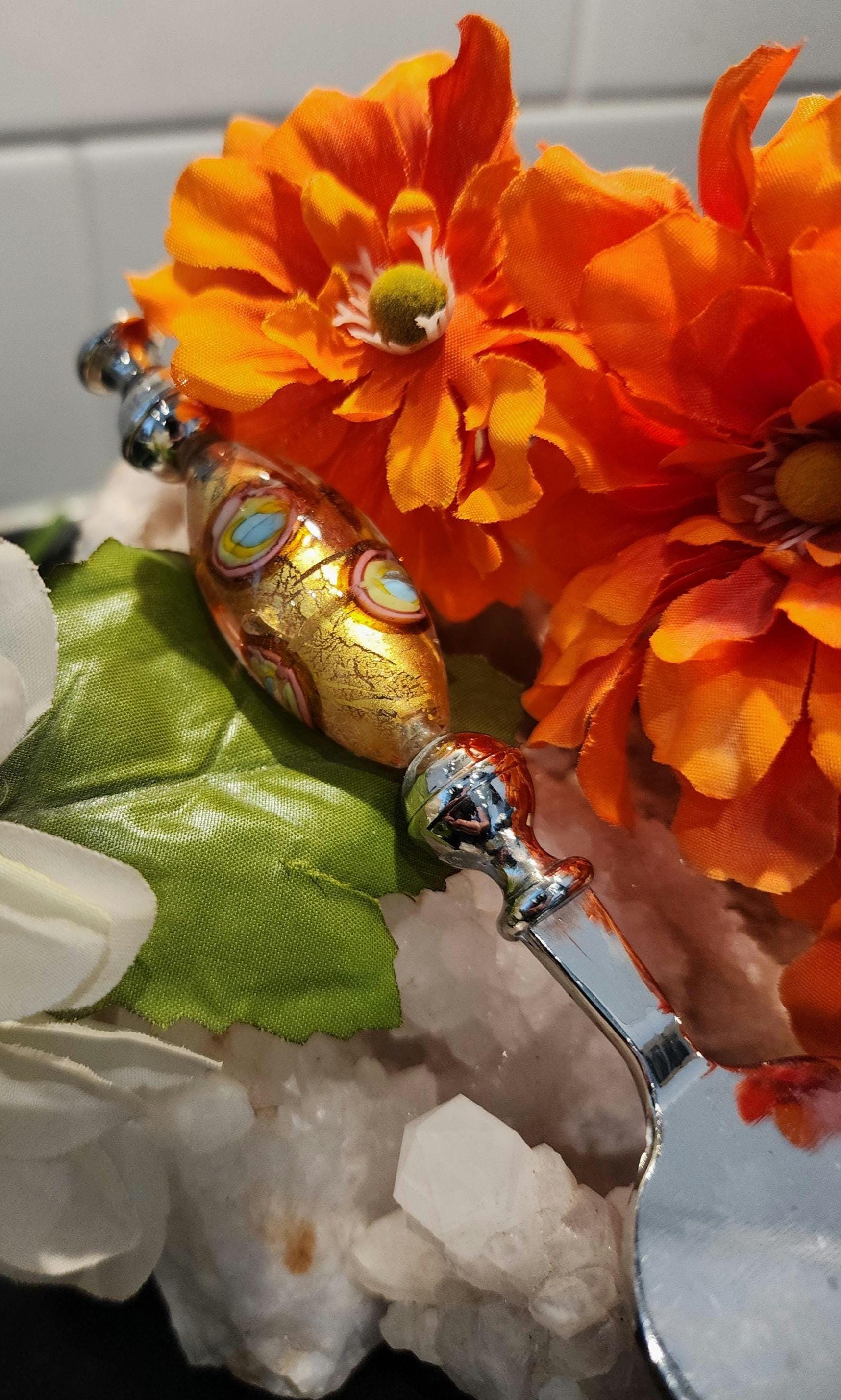 Vintage Murano Style Cake Server: Silver-Plated Dessert Server with Gold Leaf Glass Handle