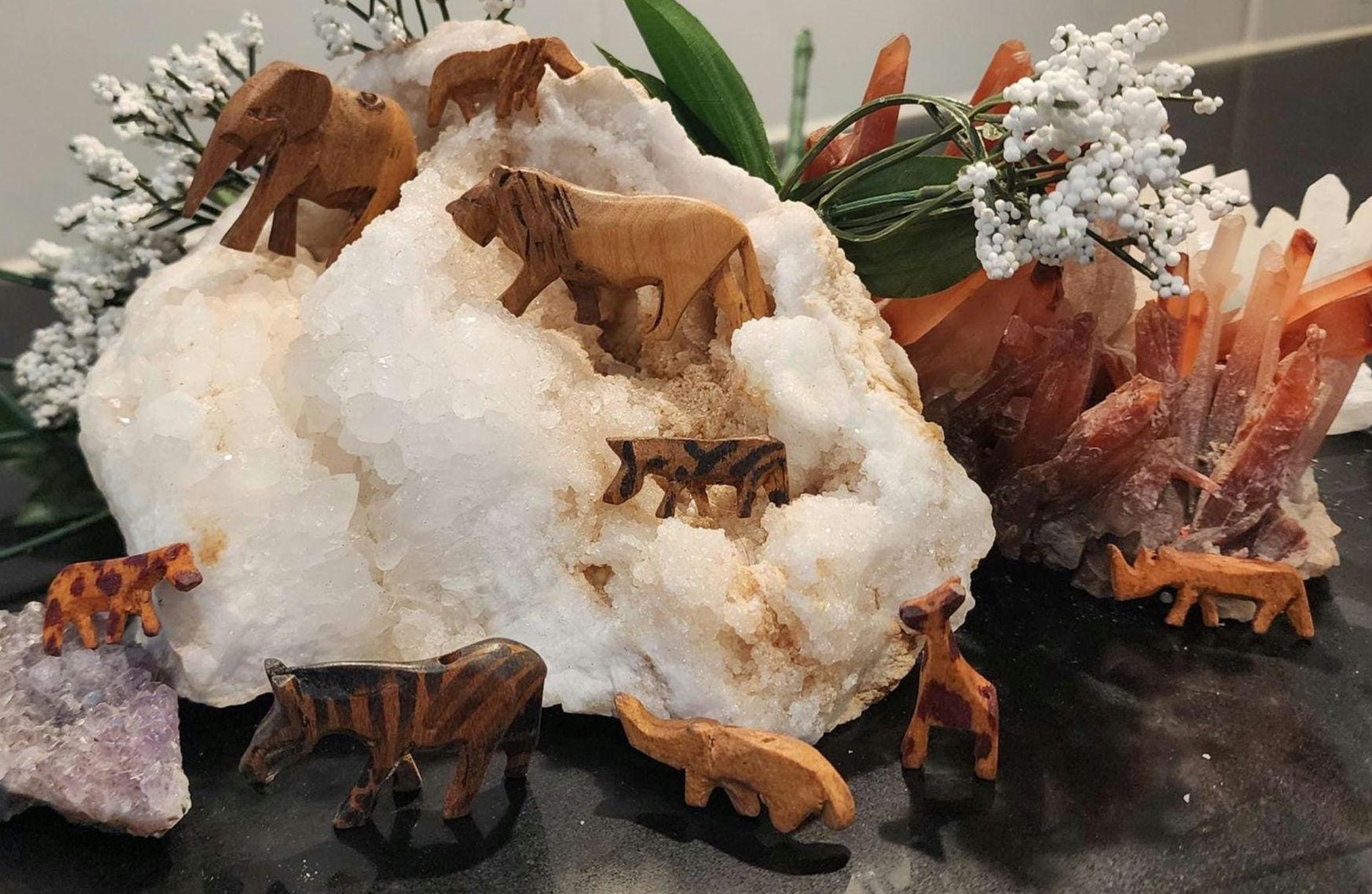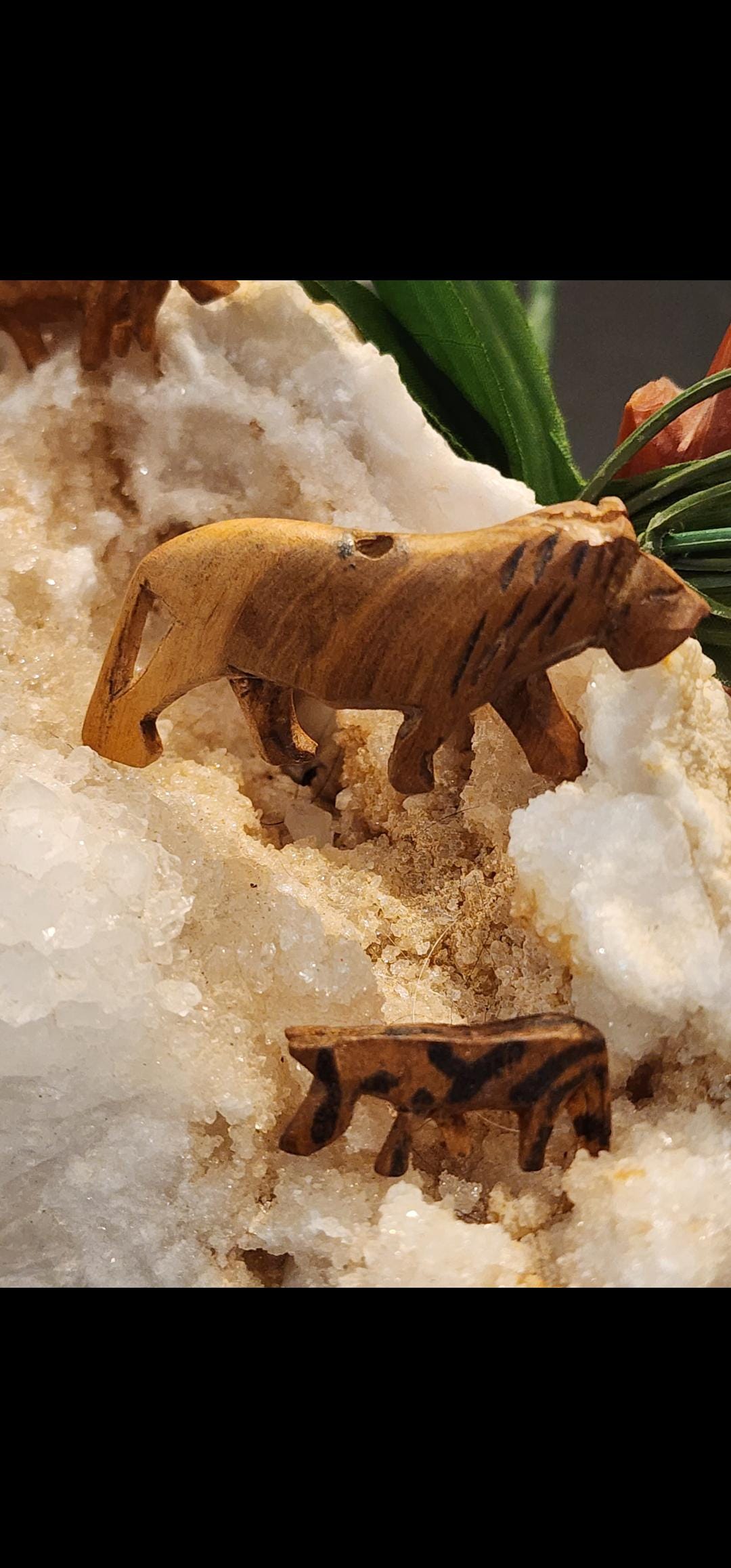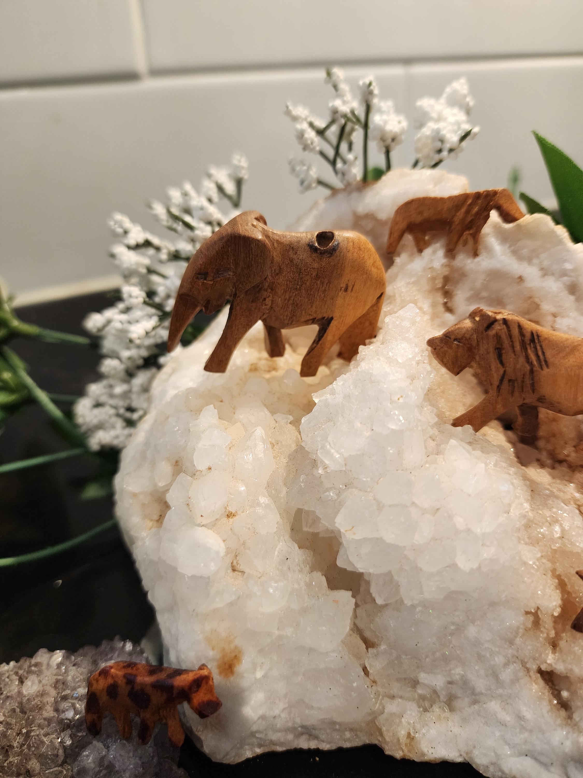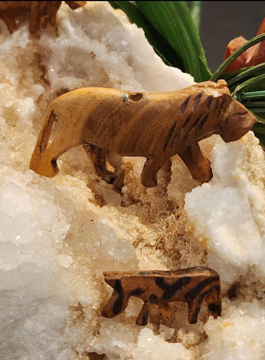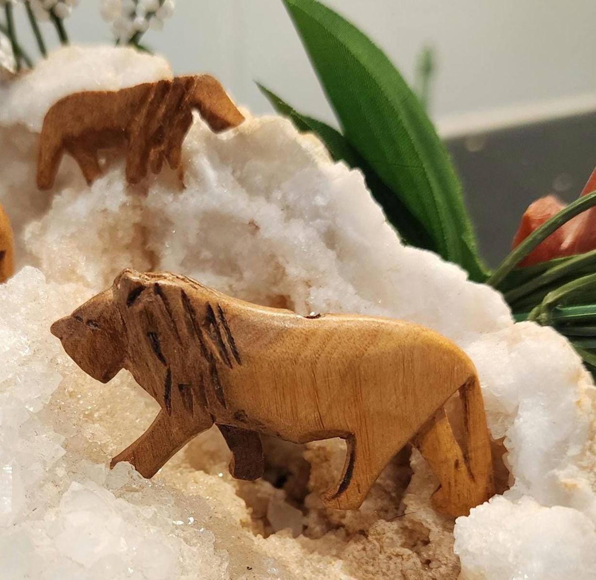 Each of these charming miniature animals is hand-carved from natural lightweight wood, likely olivewood or teak. The artisan shaped every piece by hand — no molds, no machines — giving each one its own unique character, grain pattern, and shape.