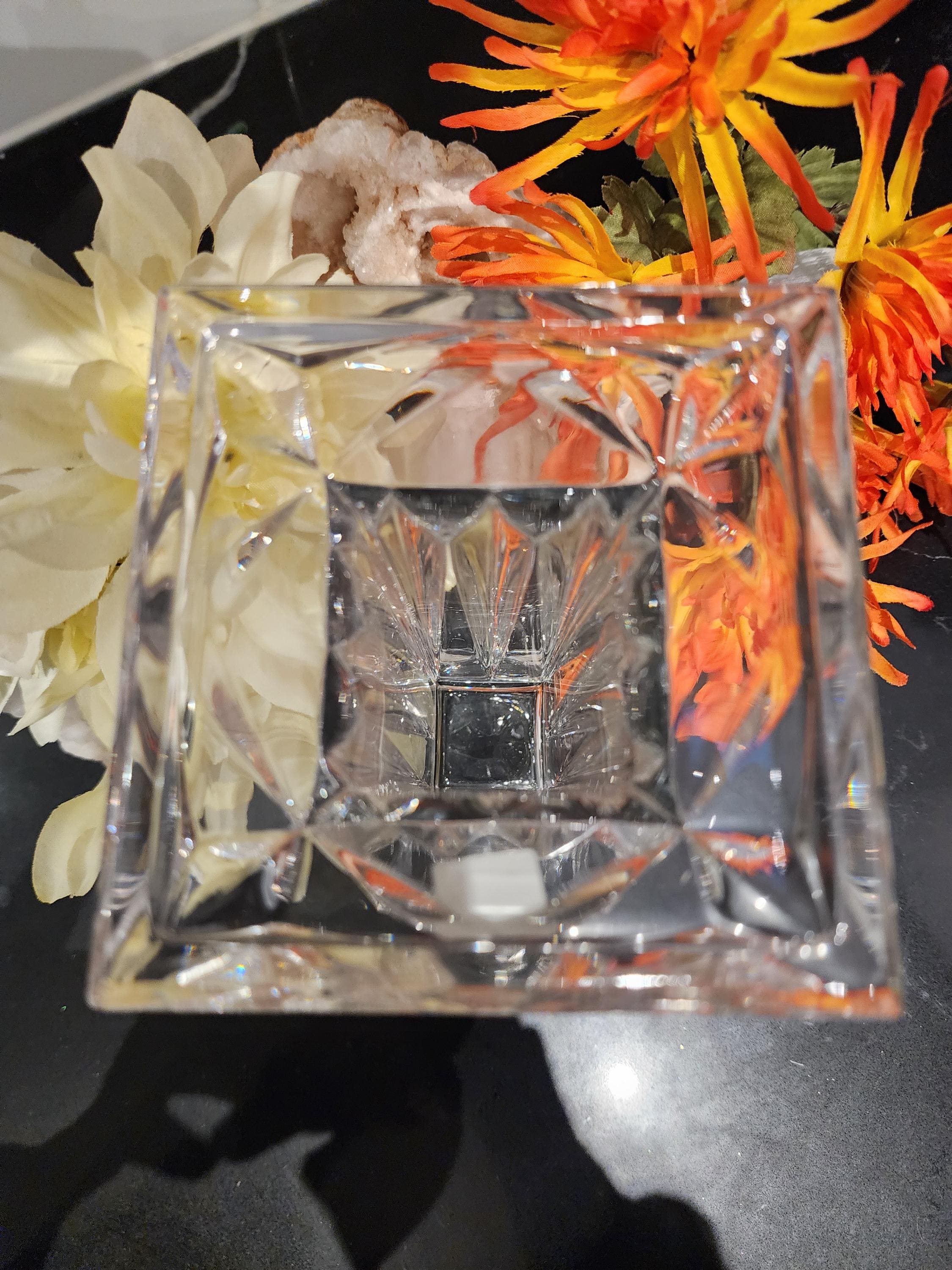 Bring timeless sparkle to your home with this PartyLite lead crystal pedestal candle holder. Crafted from thick, heavy crystal, it beautifully reflects candlelight from every angle. Designed to hold a pillar candle, its classic pedestal design adds luxury and sophistication to any décor style — from modern minimalism to vintage charm.