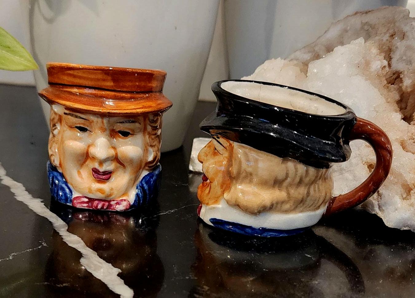Vintage Hand-Painted Toby Mugs – Set of 2, Mid-Century Japan Ceramic Face Jugs