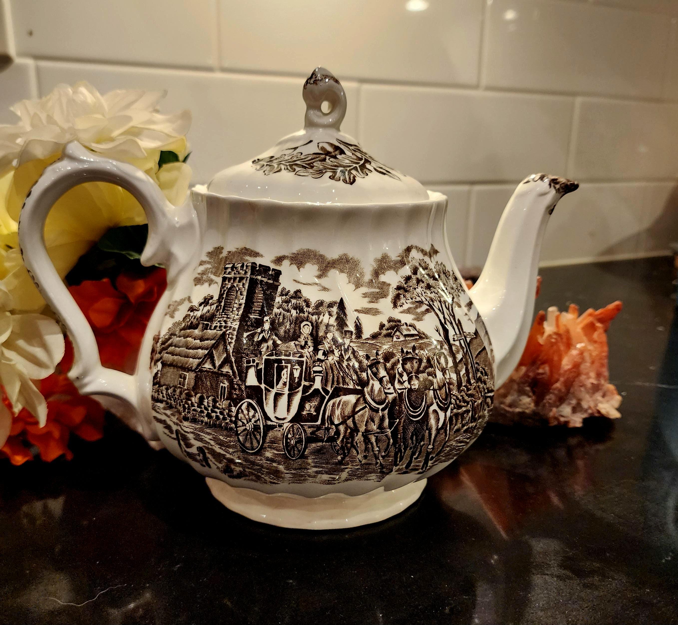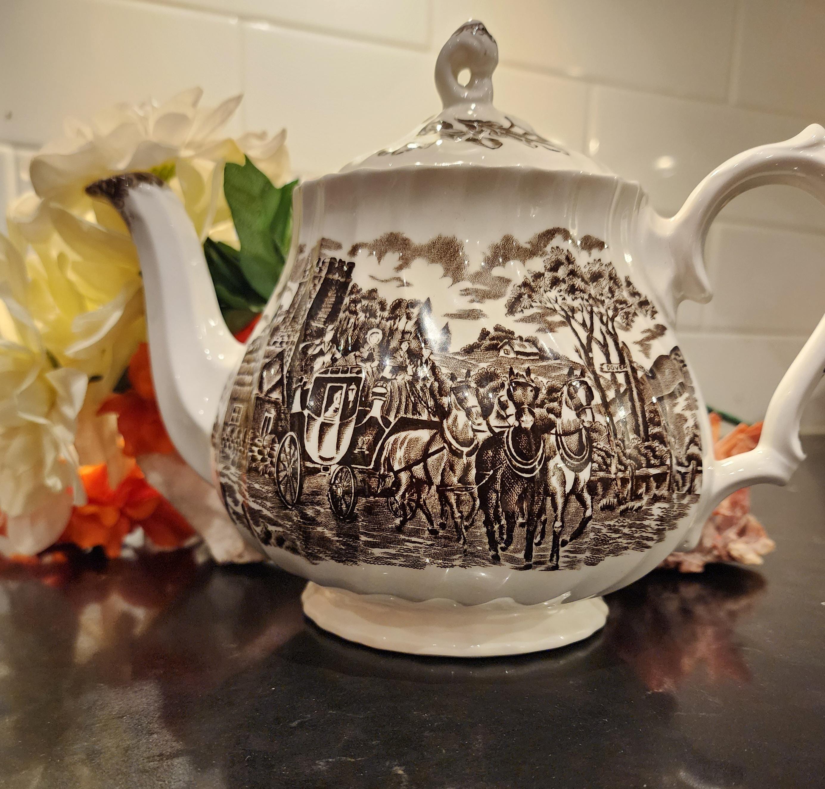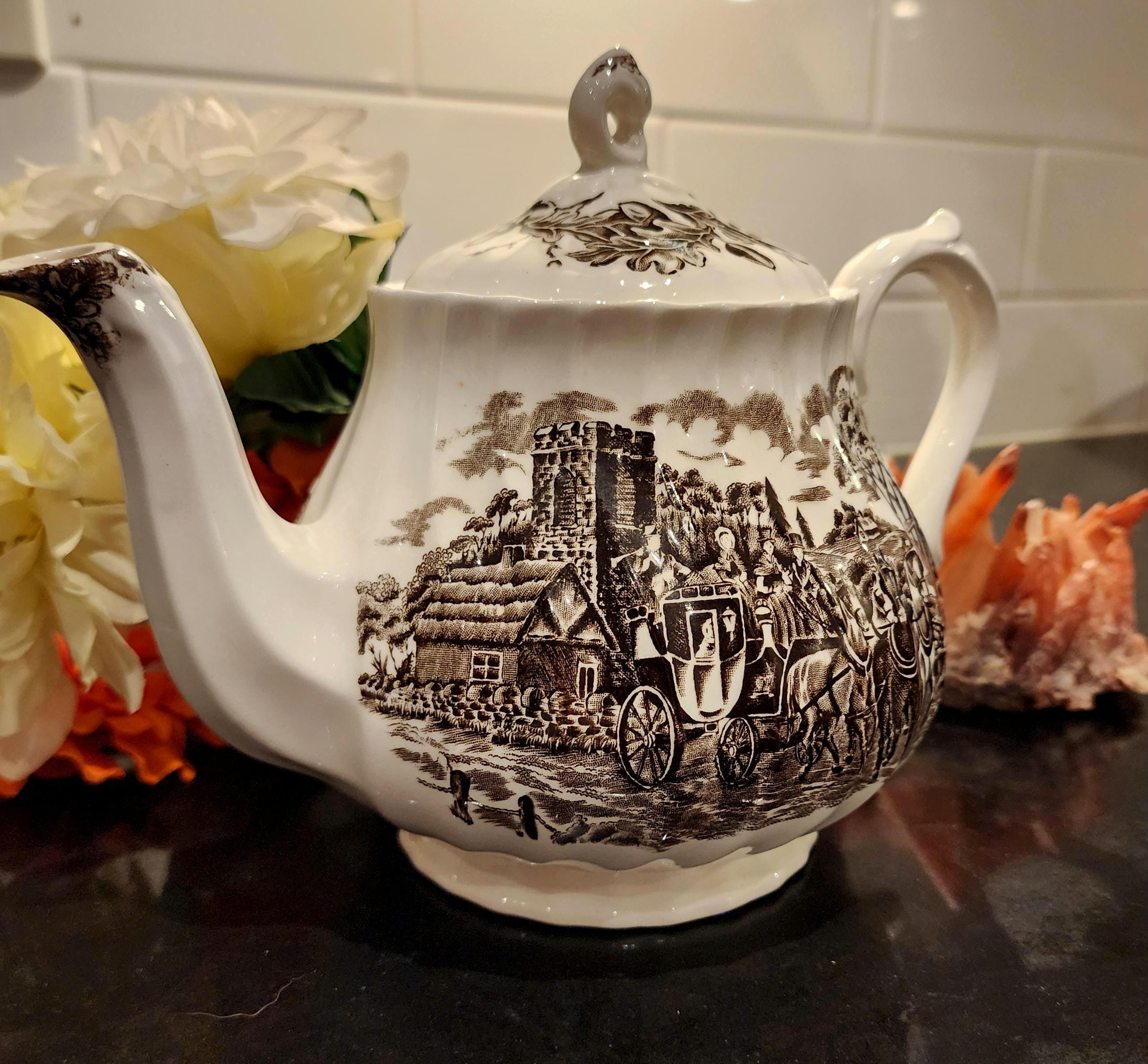 Vintage Myott Royal Mail Teapot • Brown Transferware, Staffordshire England