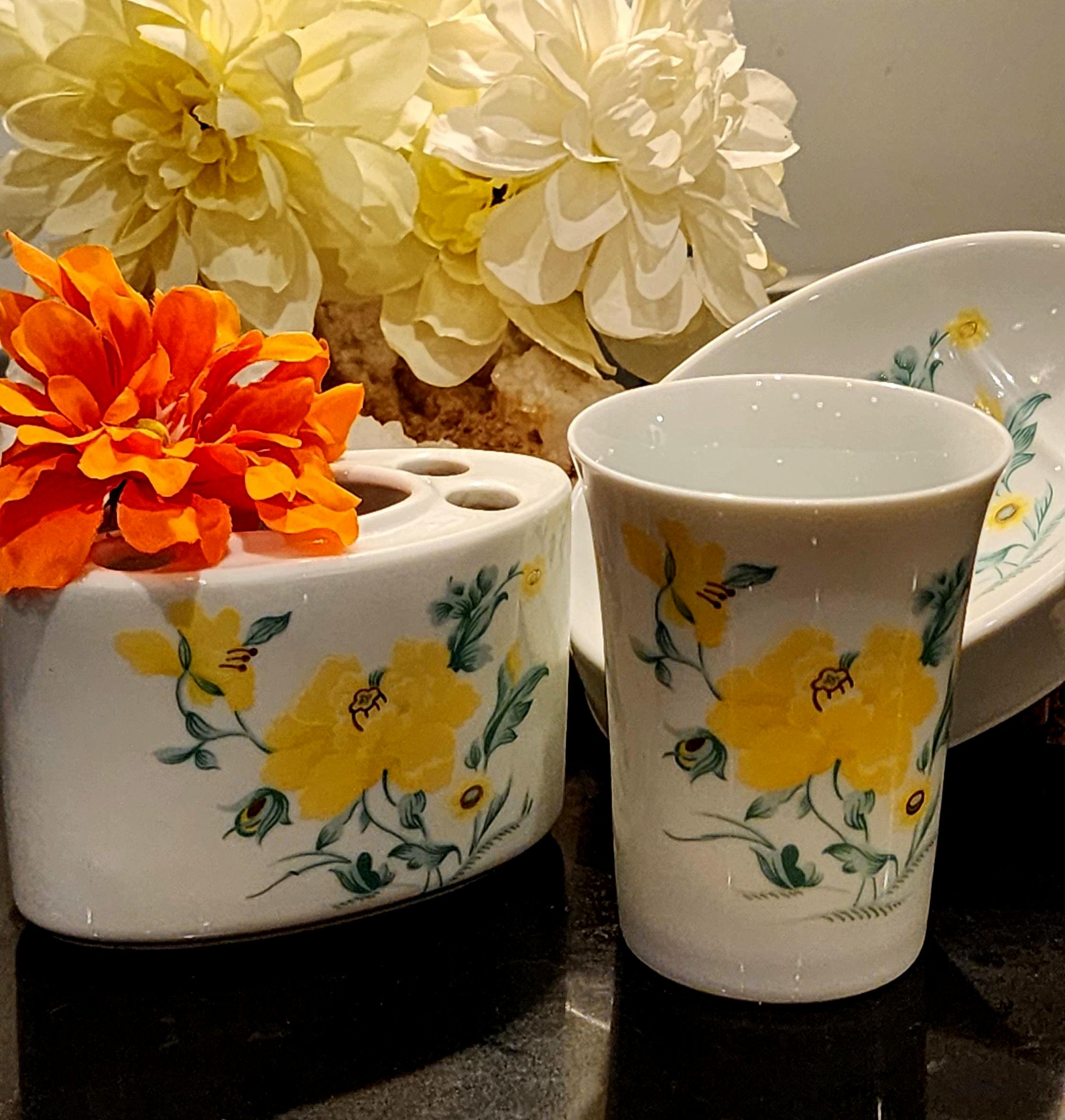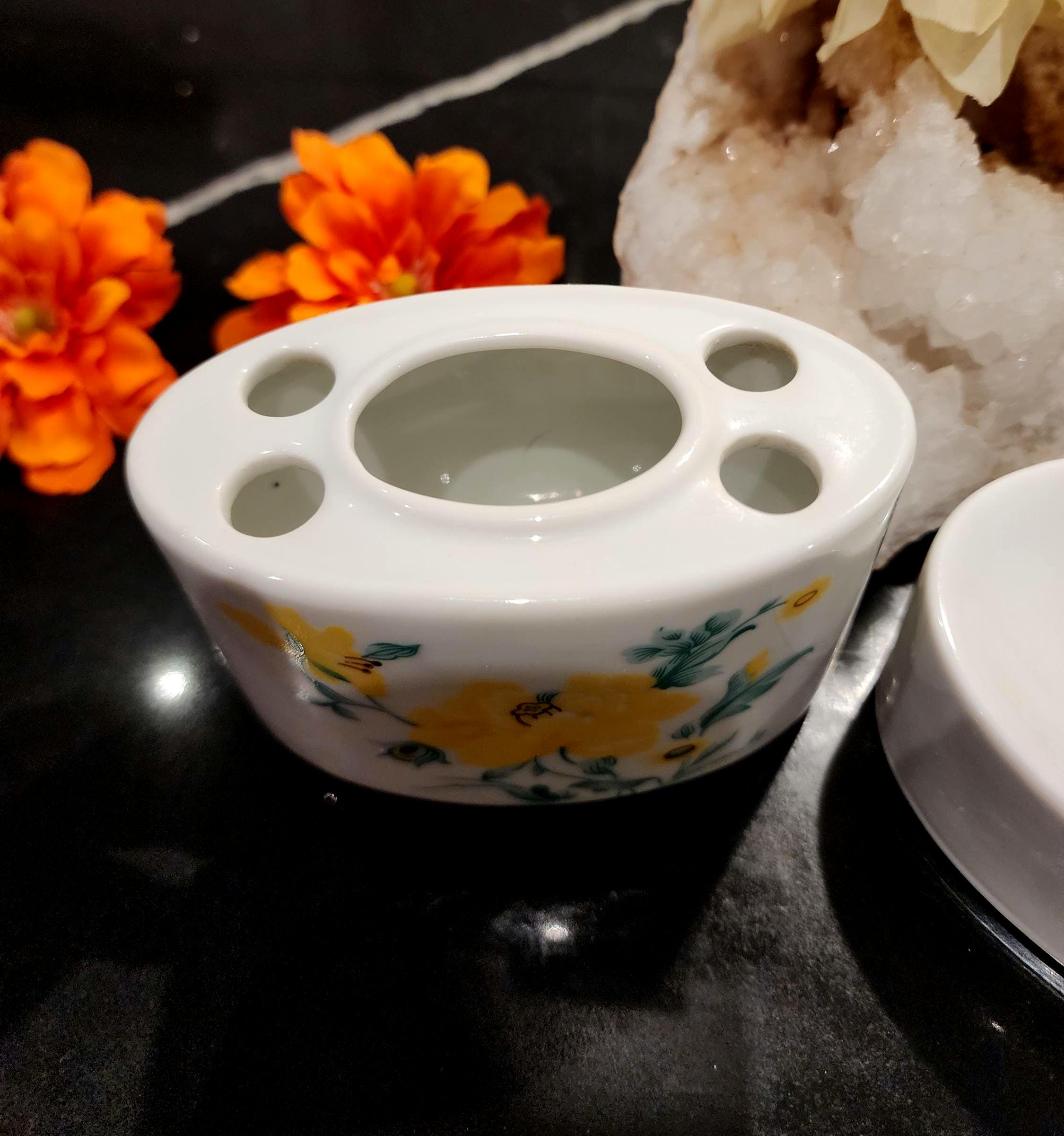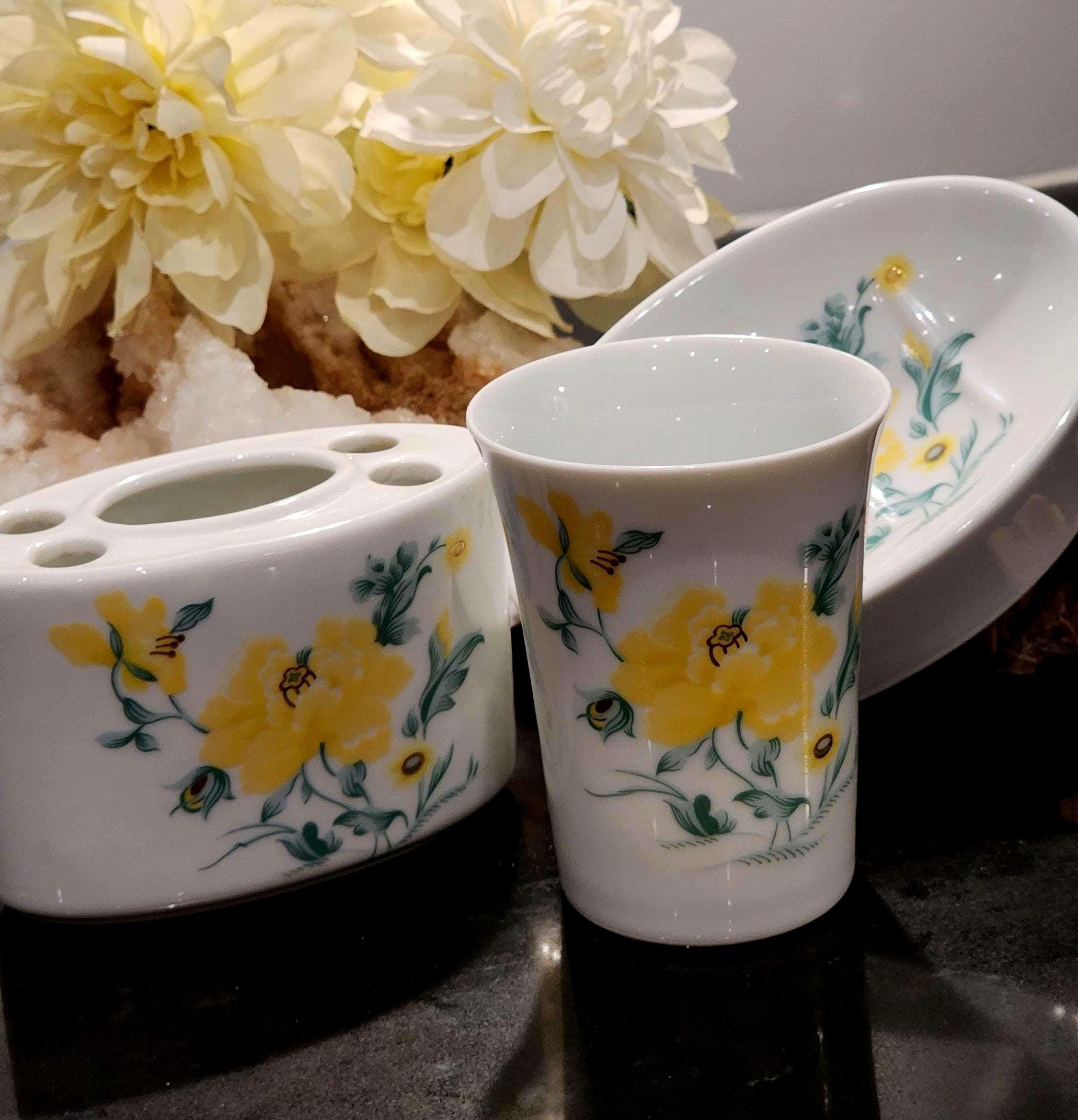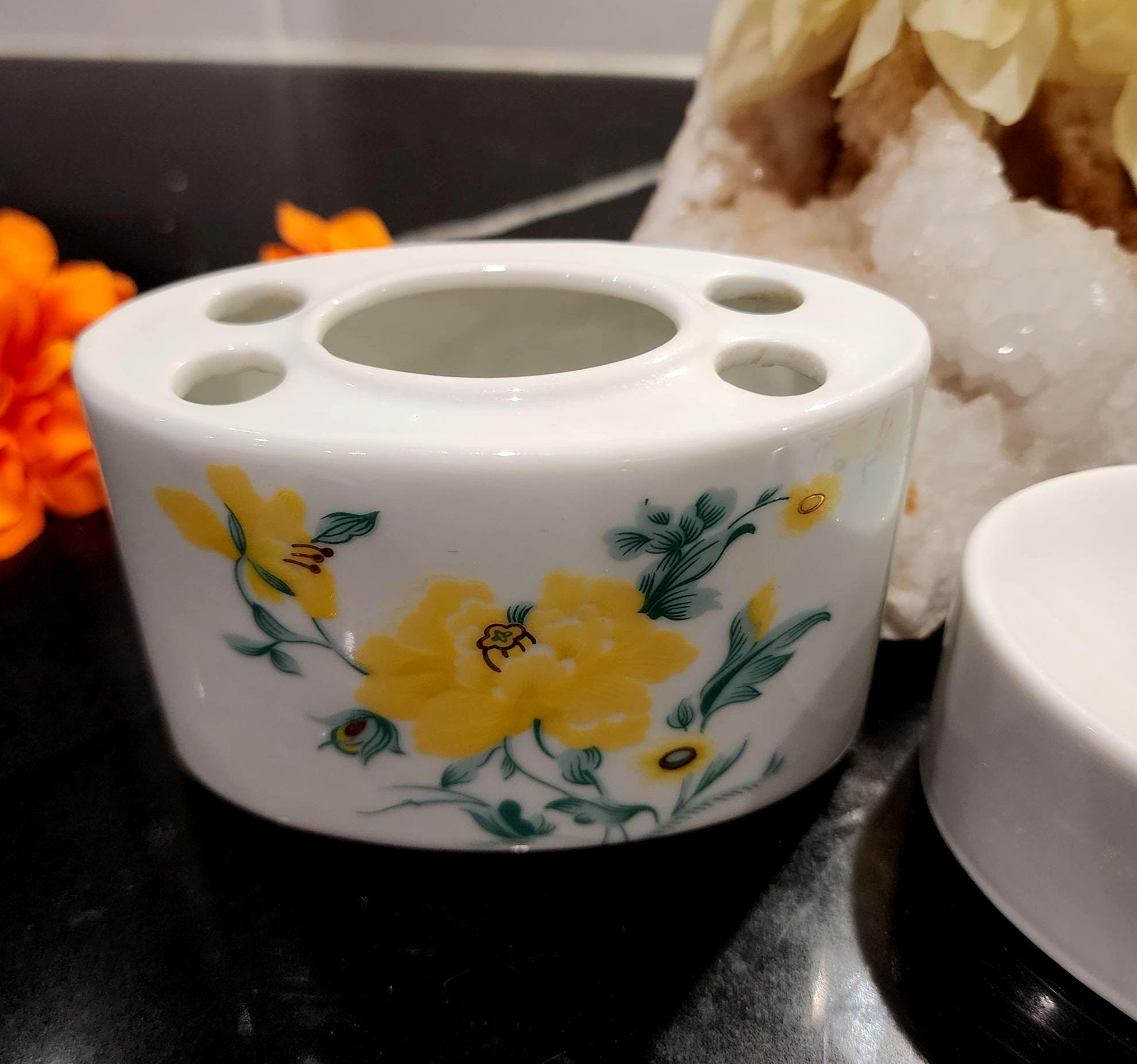 Vintage 1950s Floral Porcelain Vanity Set – Mid-Century Japan Bathroom Decor
