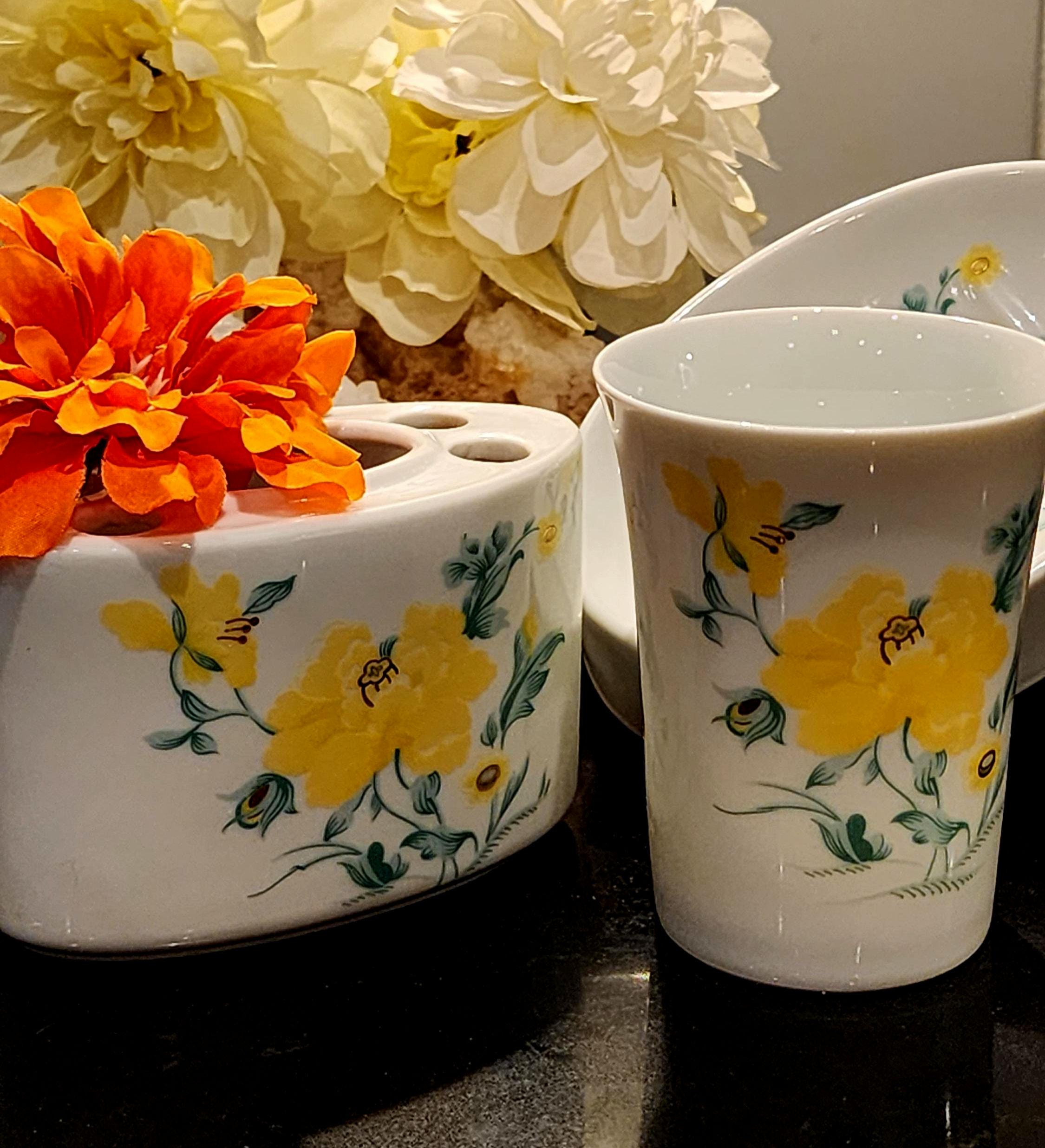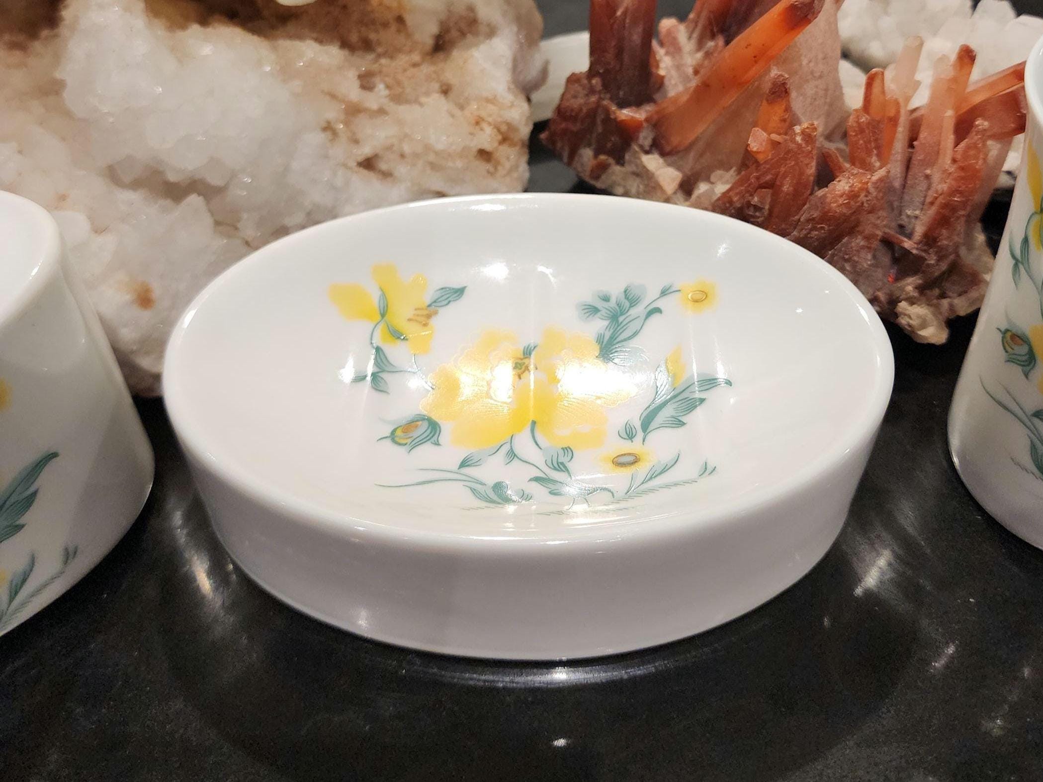 • Condition: Excellent vintage condition overall. There is a small hairline under the soap dish — stable and not visible when displayed. No chips or crazing on other pieces.