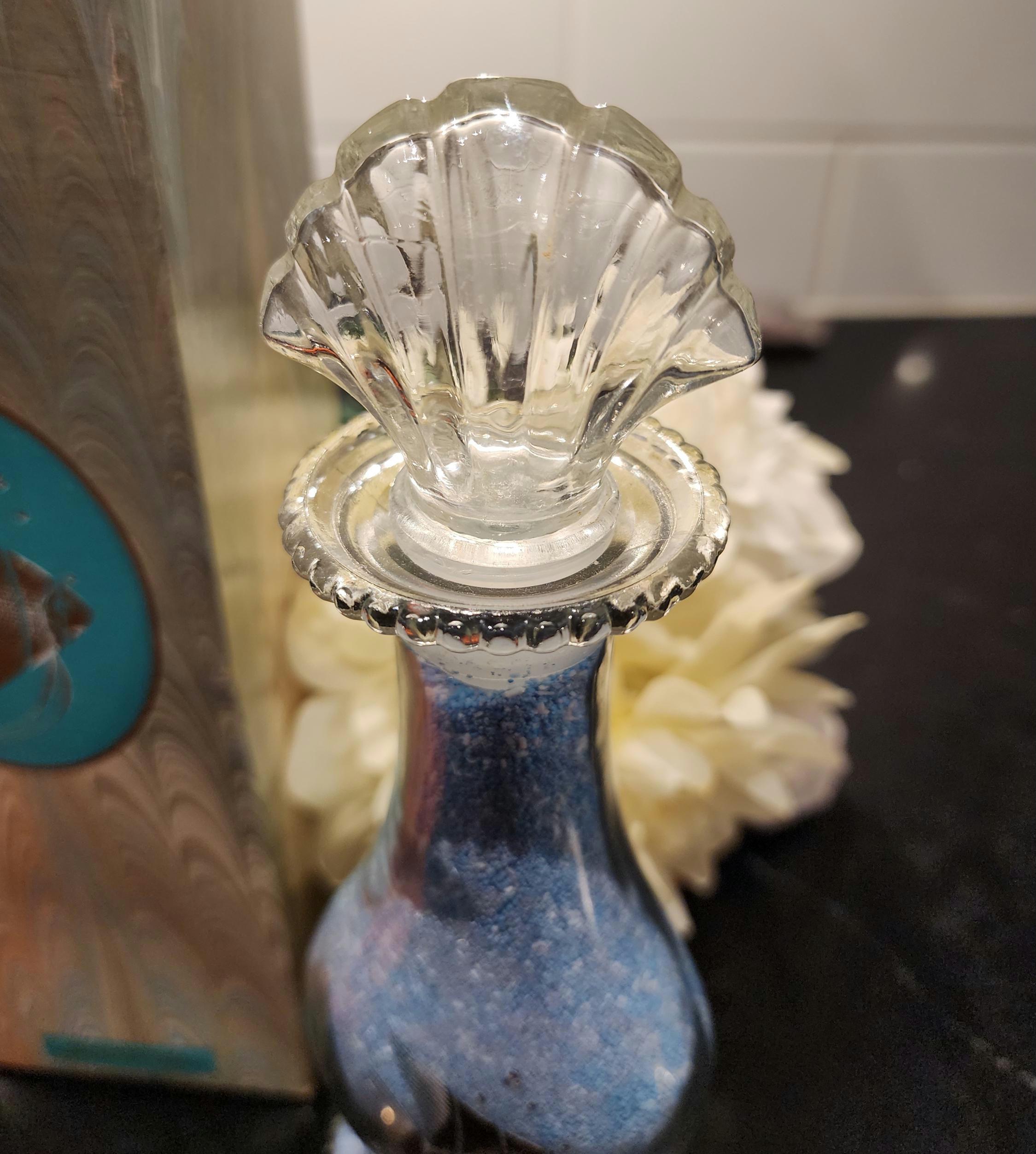 Over the decades, the oil has naturally crystallized, creating a gorgeous bead-like ocean effect inside — a normal and desirable trait in authentic vintage Avon bath oils.