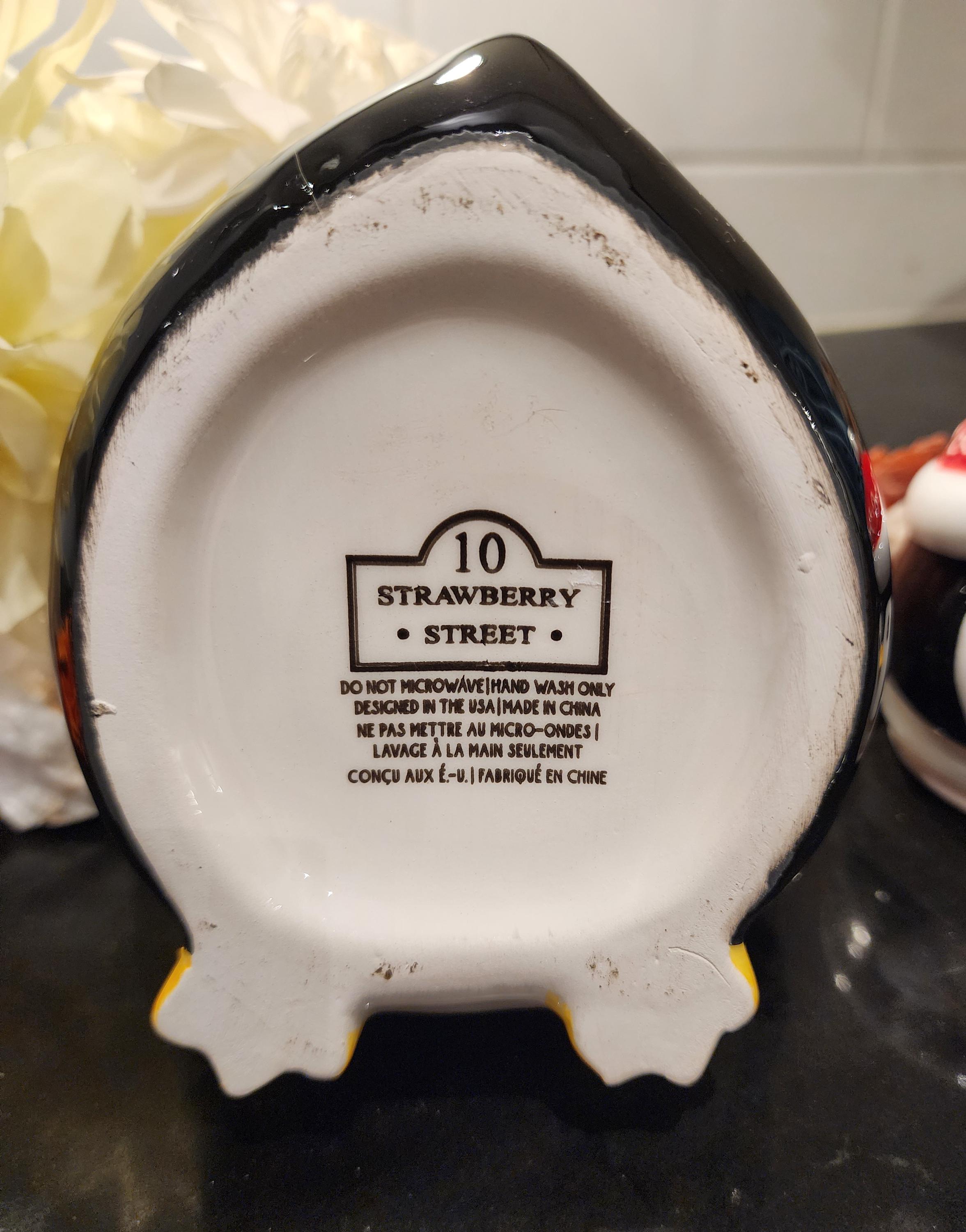 Bring festive charm to your kitchen with this adorable 10 Strawberry Street Penguin Cookie Jar, a collectible piece from the early 2000s holiday collection. 🐧