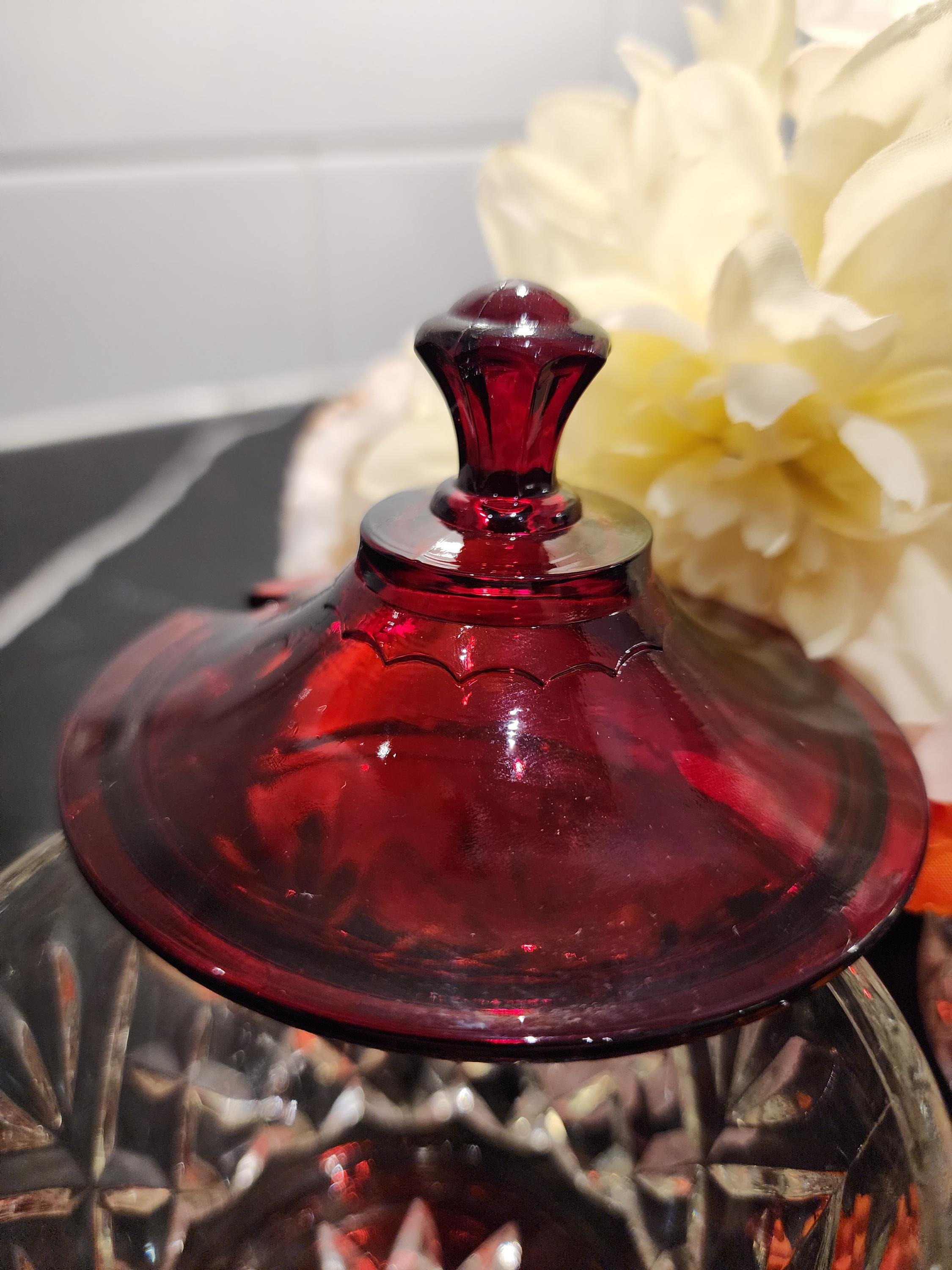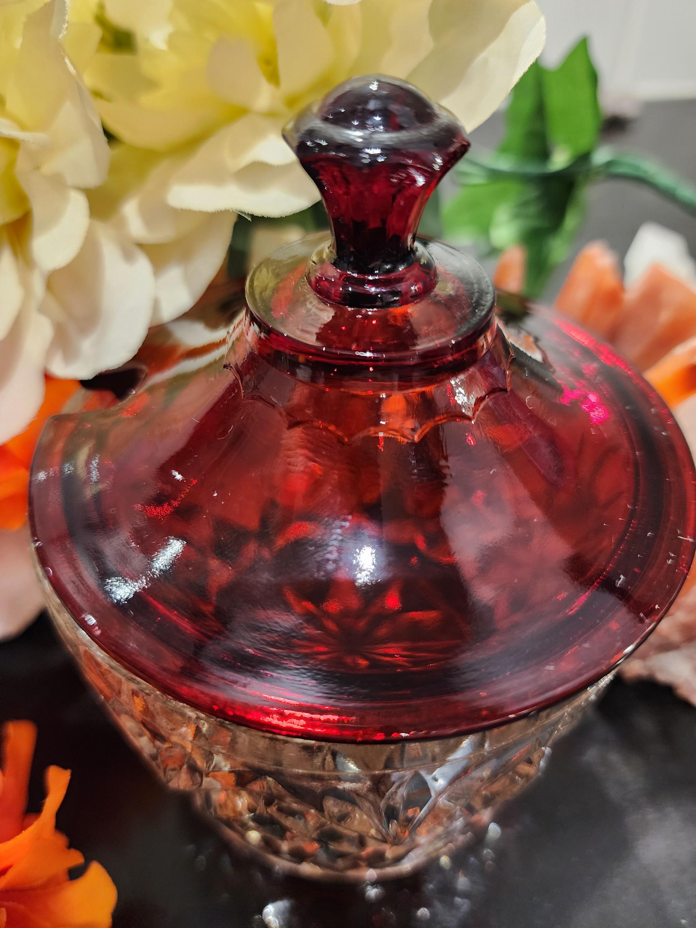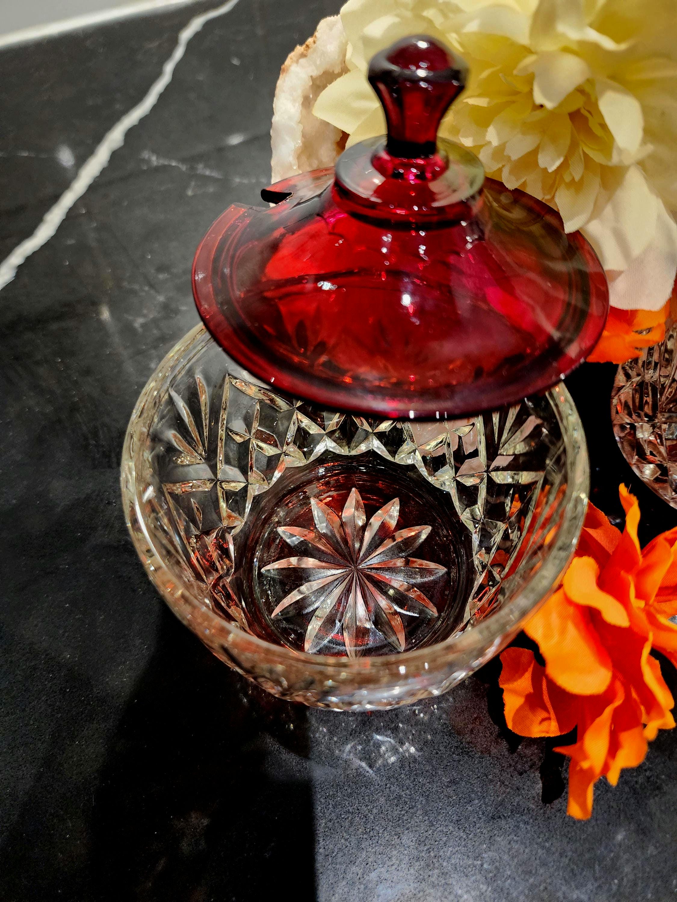 Holiday serving, vanity décor, candy or sugar storage, or gifting to a vintage glass collector.