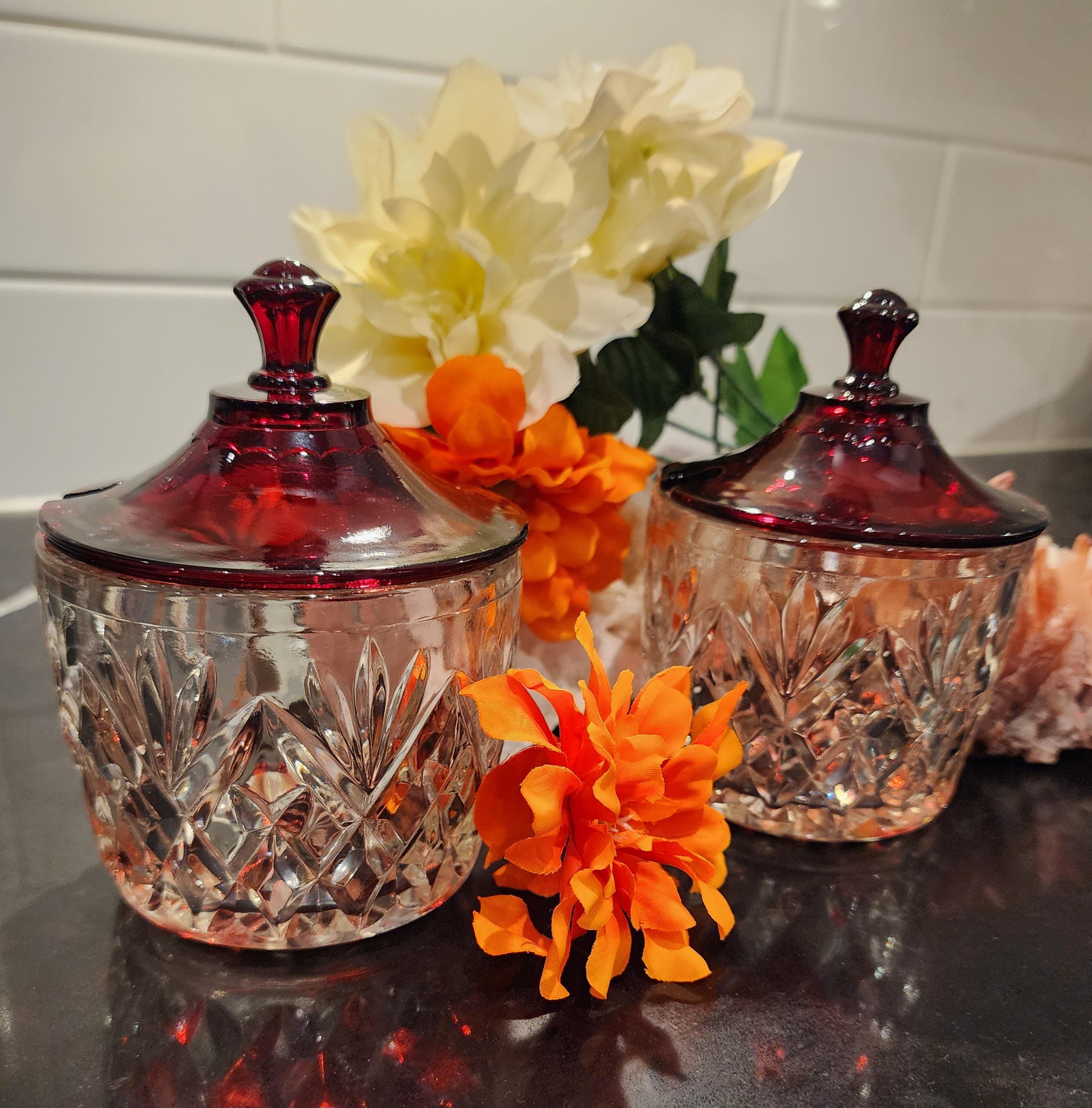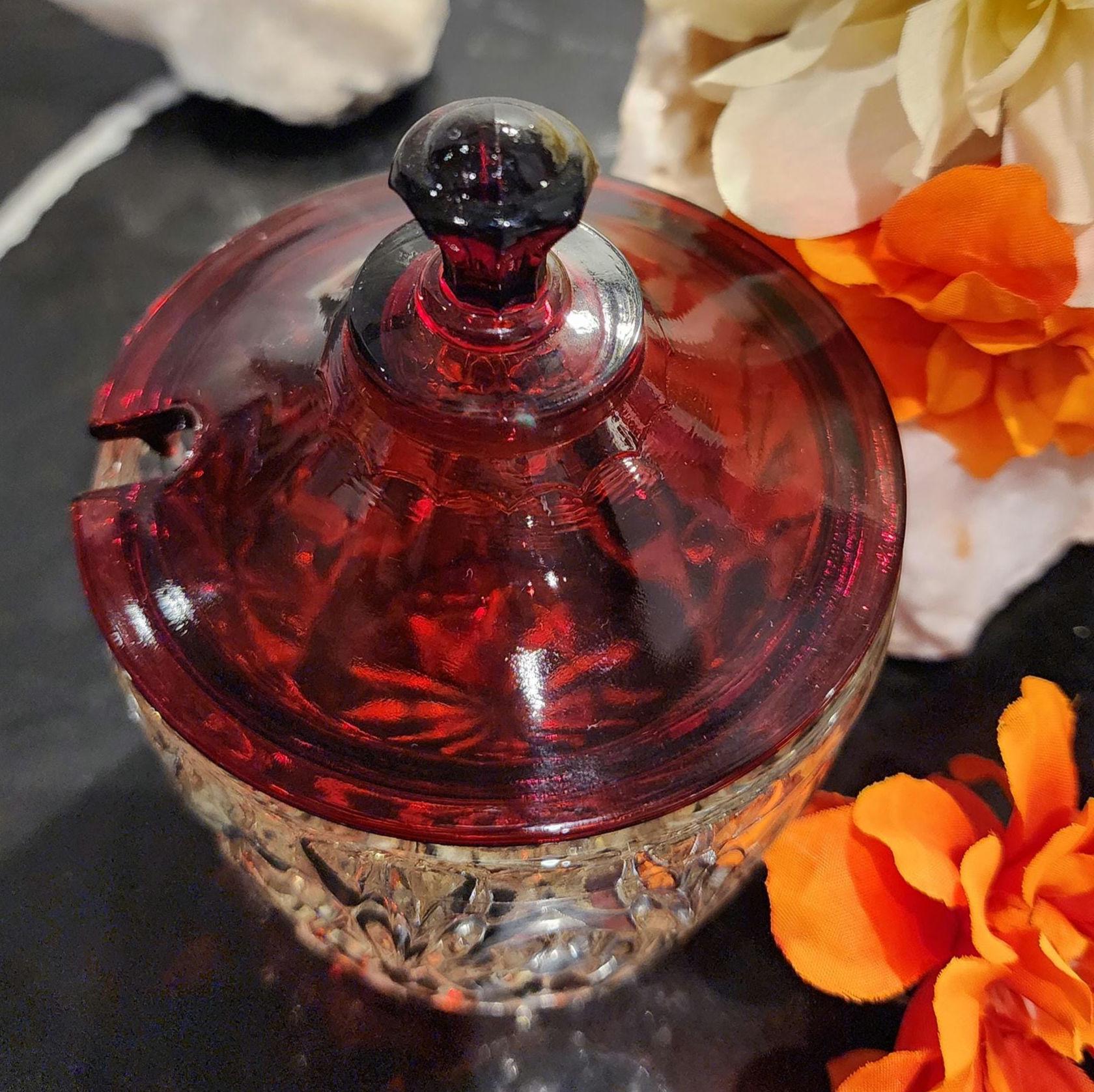 Vintage Ruby Red Glass Jam Jars – Indiana Glass Park Lane, Mid Century Condiment Set