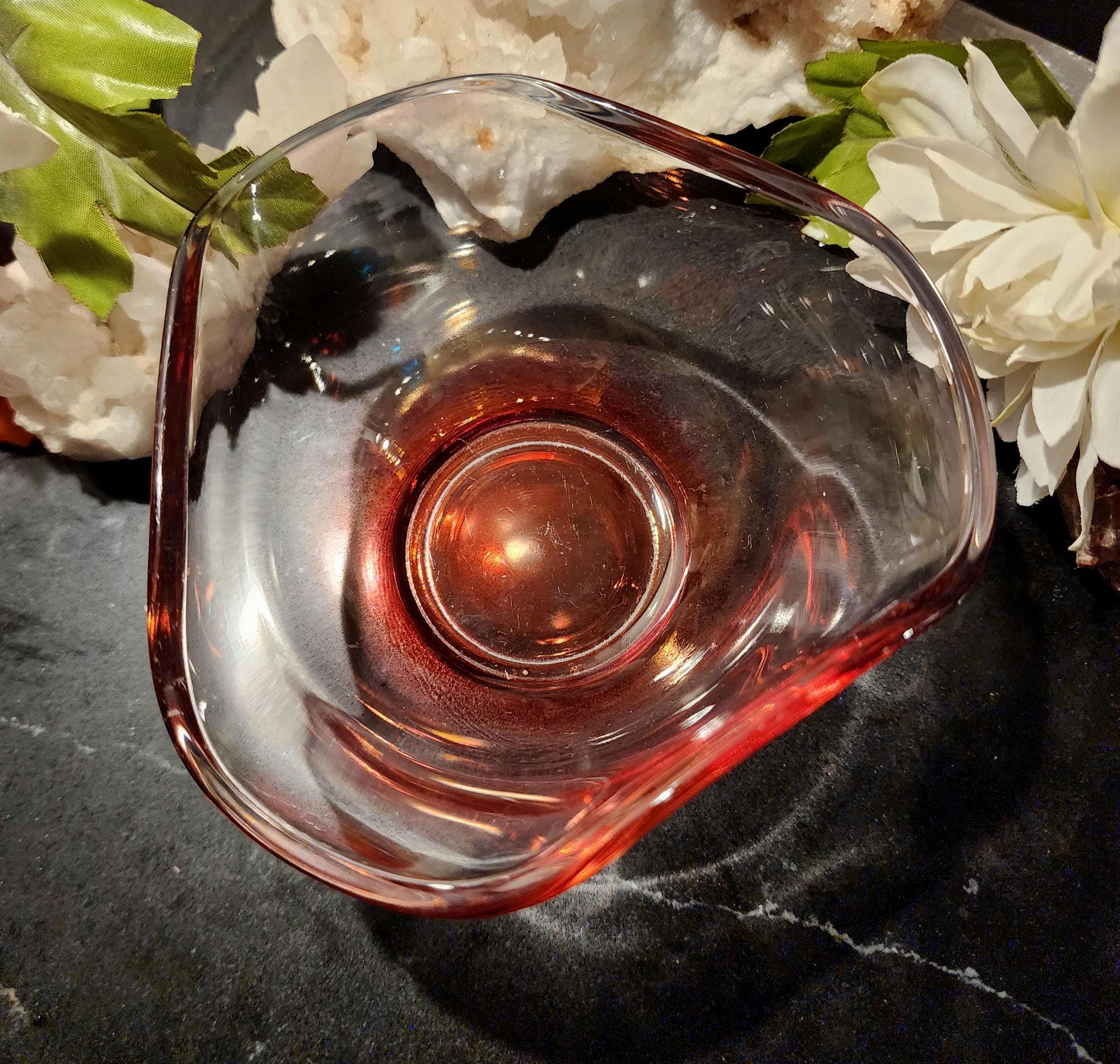 Add a touch of mid-century charm to your home with this vintage Anchor Hocking cranberry glass bowl.