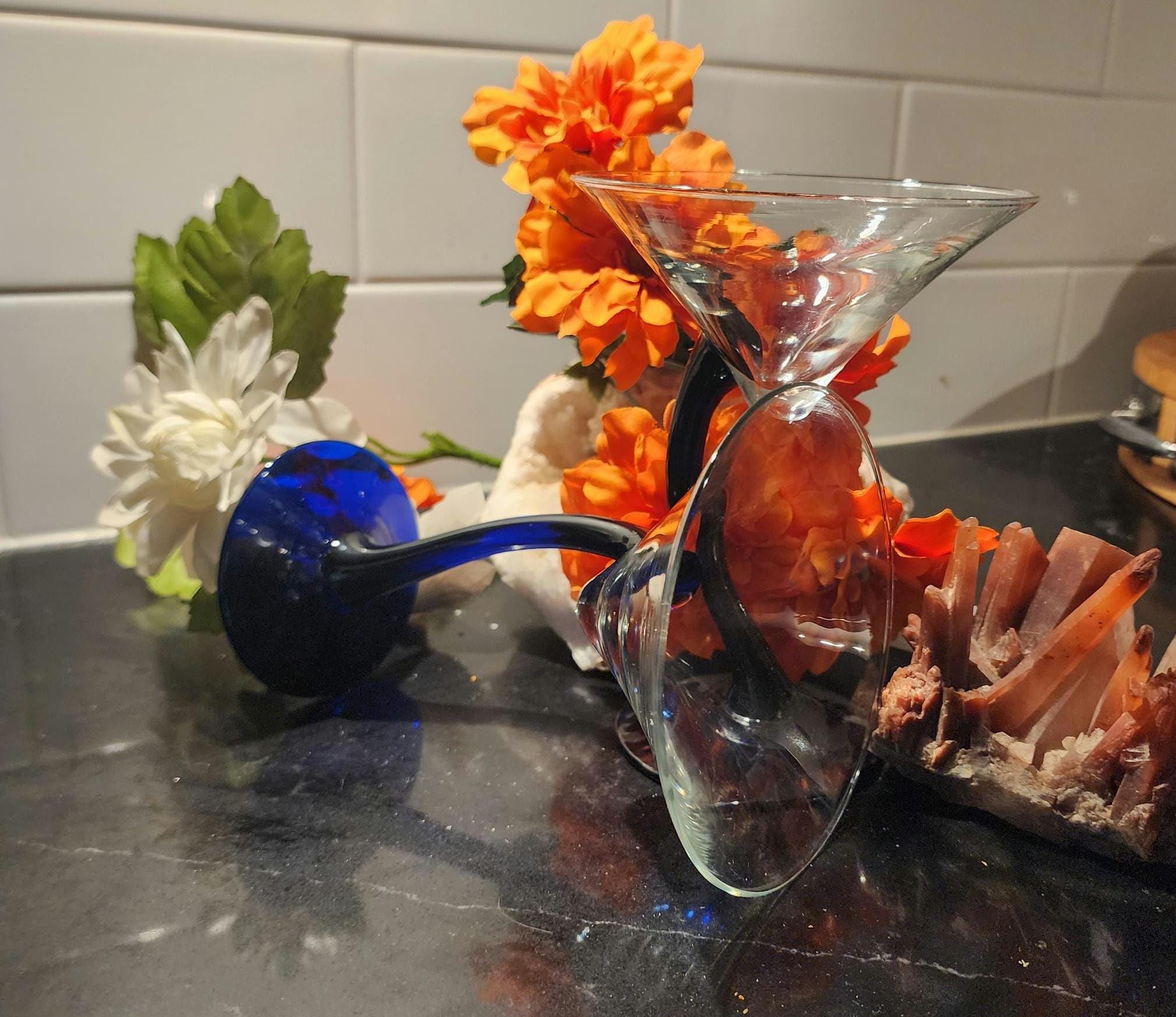 Set of 2 Libbey Blue Stem Martini Glasses – Vintage Asymmetrical Cocktail Glassware