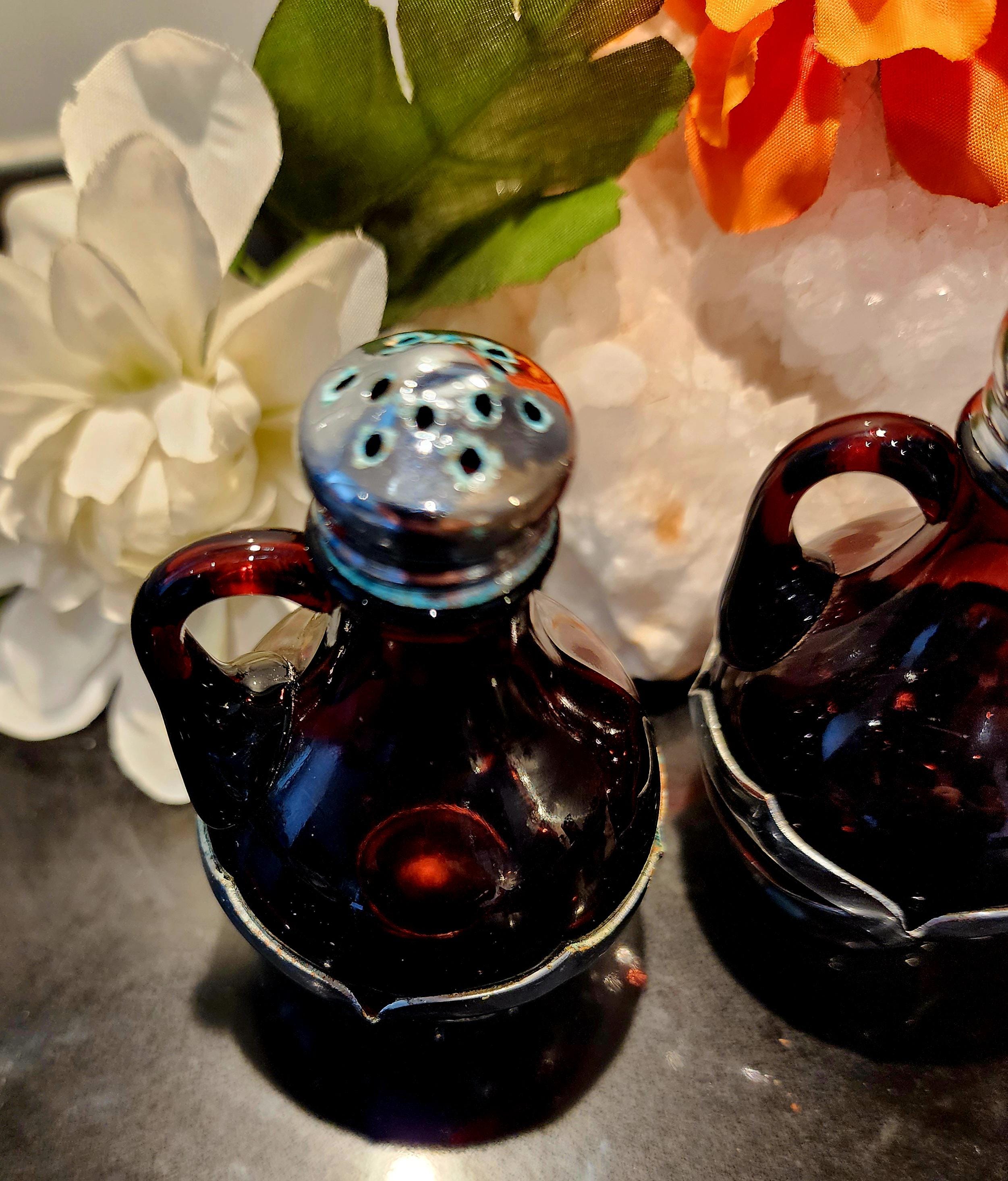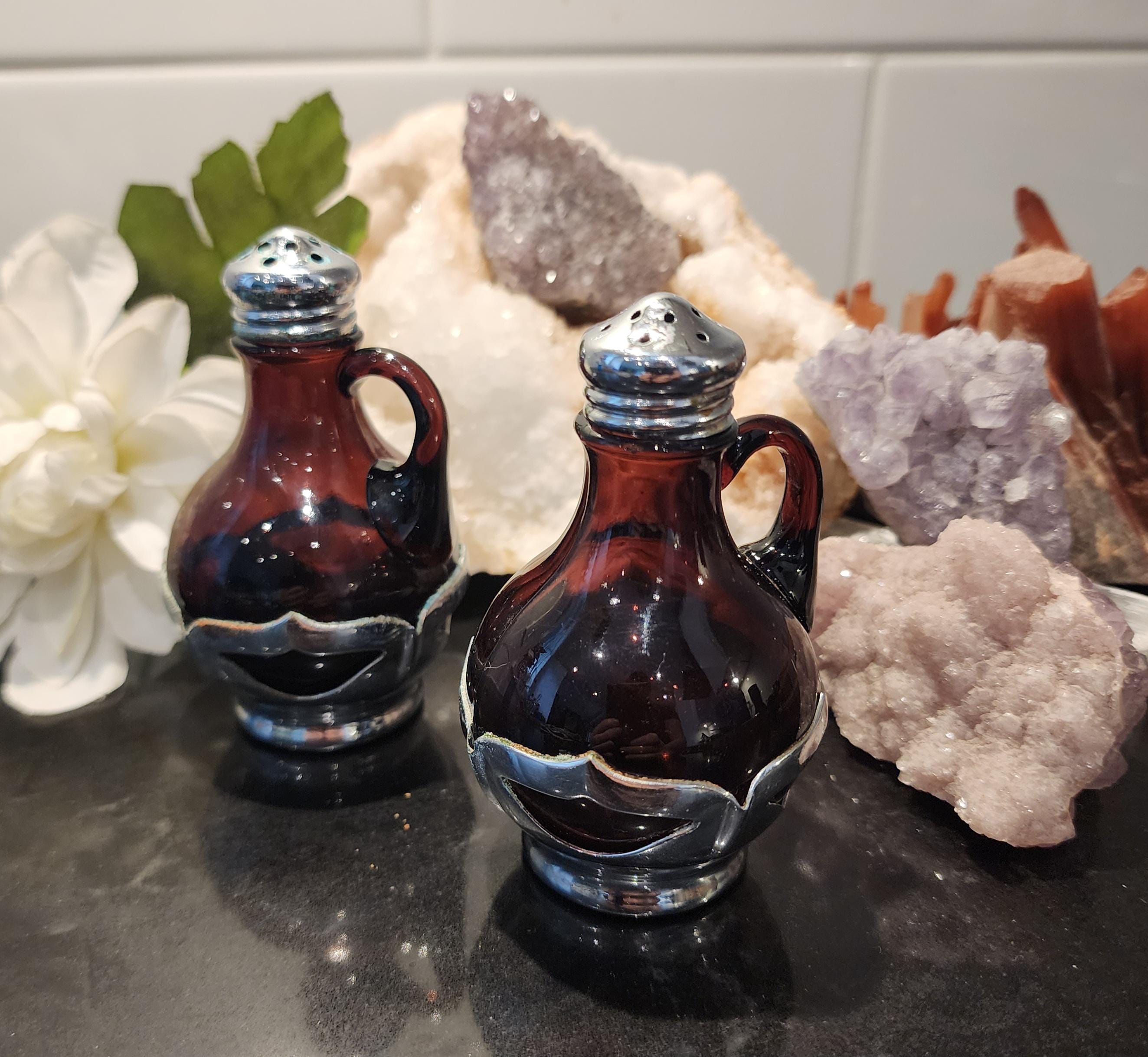Vintage Farber Bros. Amethyst Glass Salt & Pepper Shakers – Art Deco Chrome