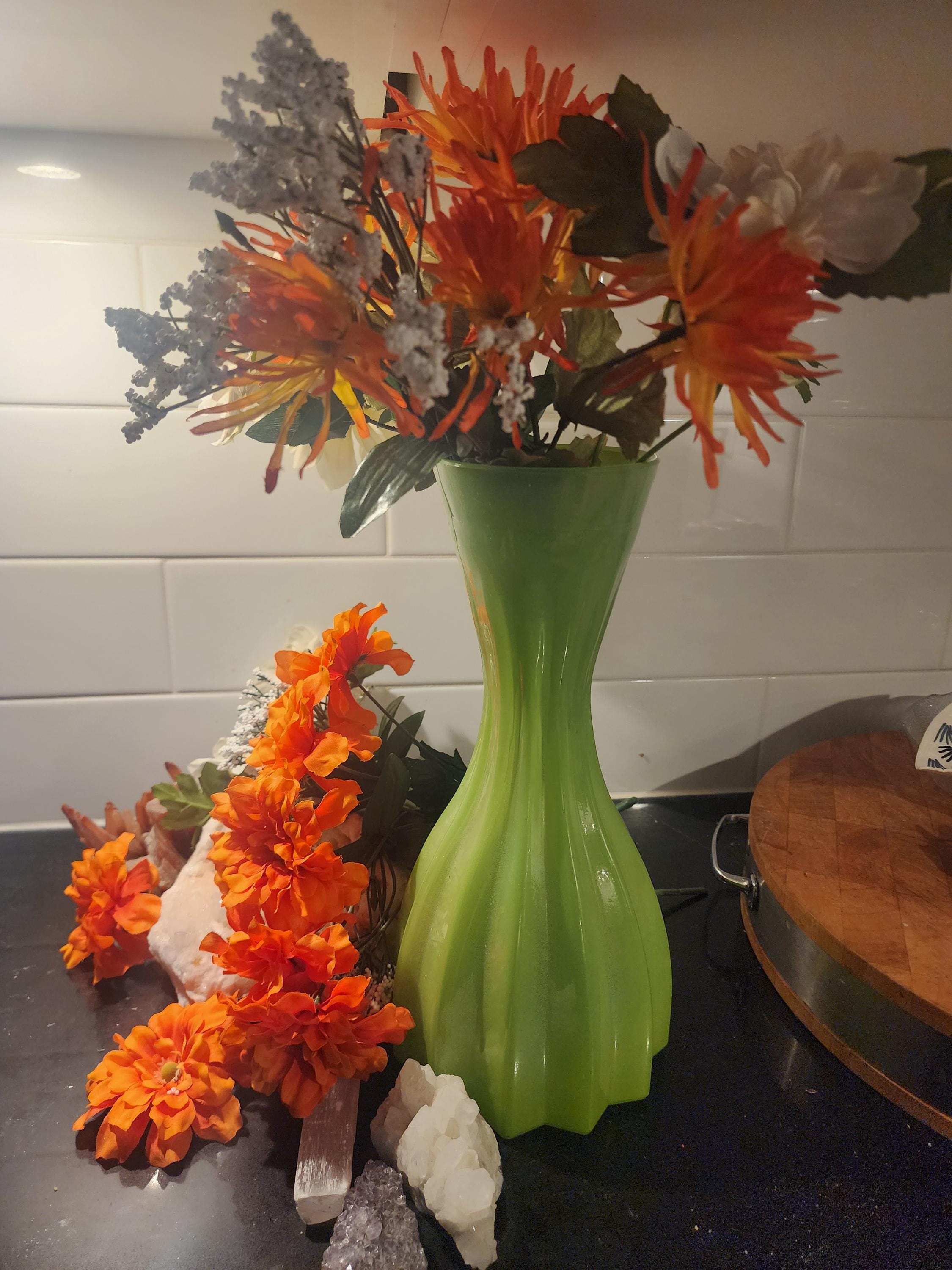 Thrifted, rescued, and ready to glow again 🌿✨ This gorgeous recycled-glass beauty proves sustainability can be stylish — because good glass deserves a second act!