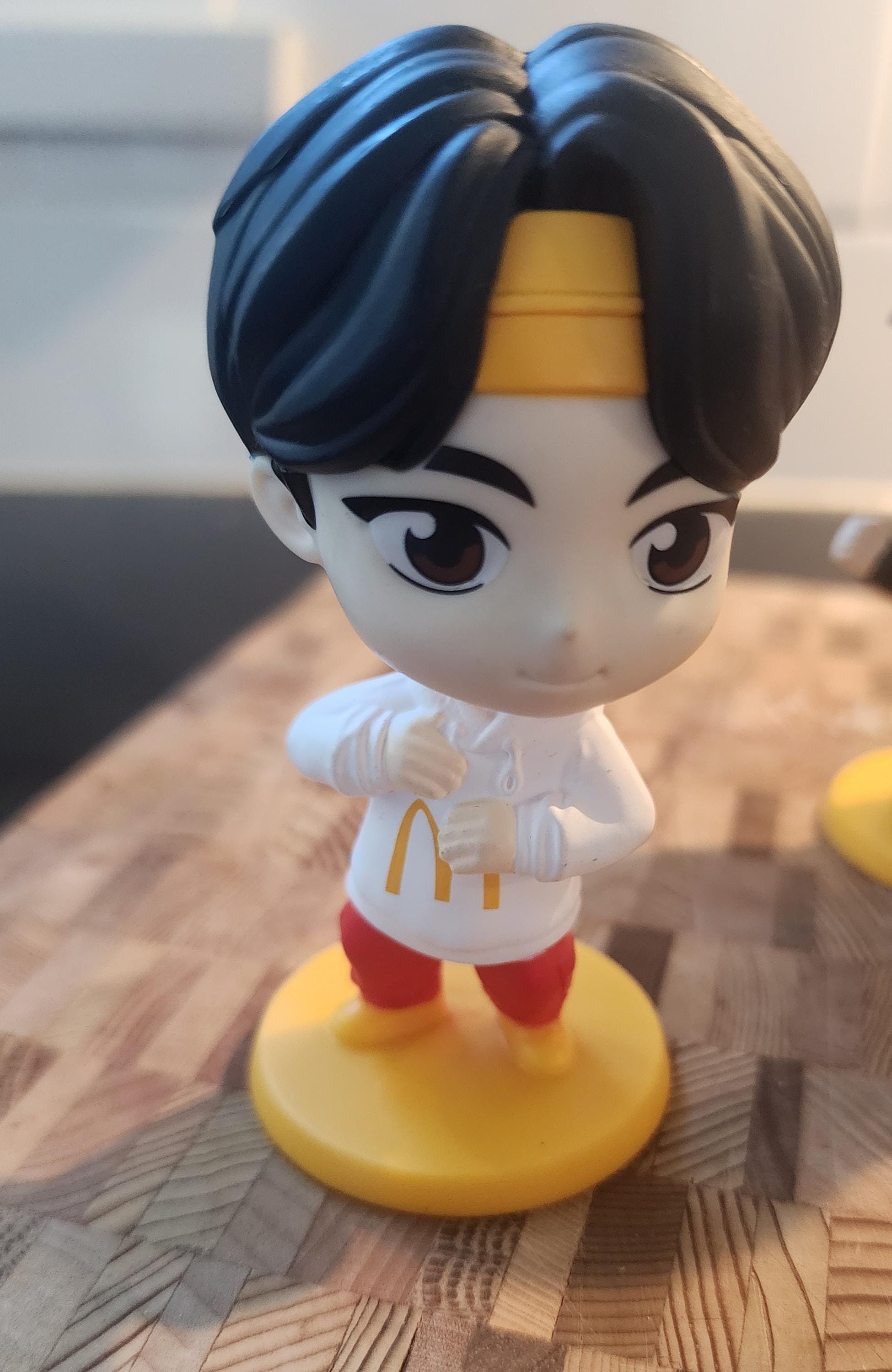 From the limited McDonald’s × BTS collaboration, this adorable chibi-style Suga features his bright outfit and signature charm. The perfect addition to any BTS ARMY collection or K-Pop display shelf.
