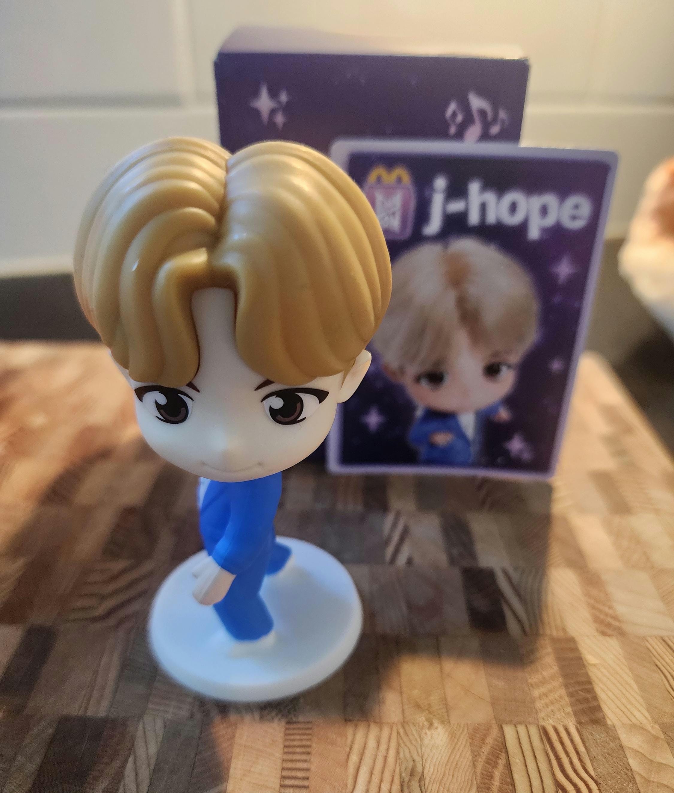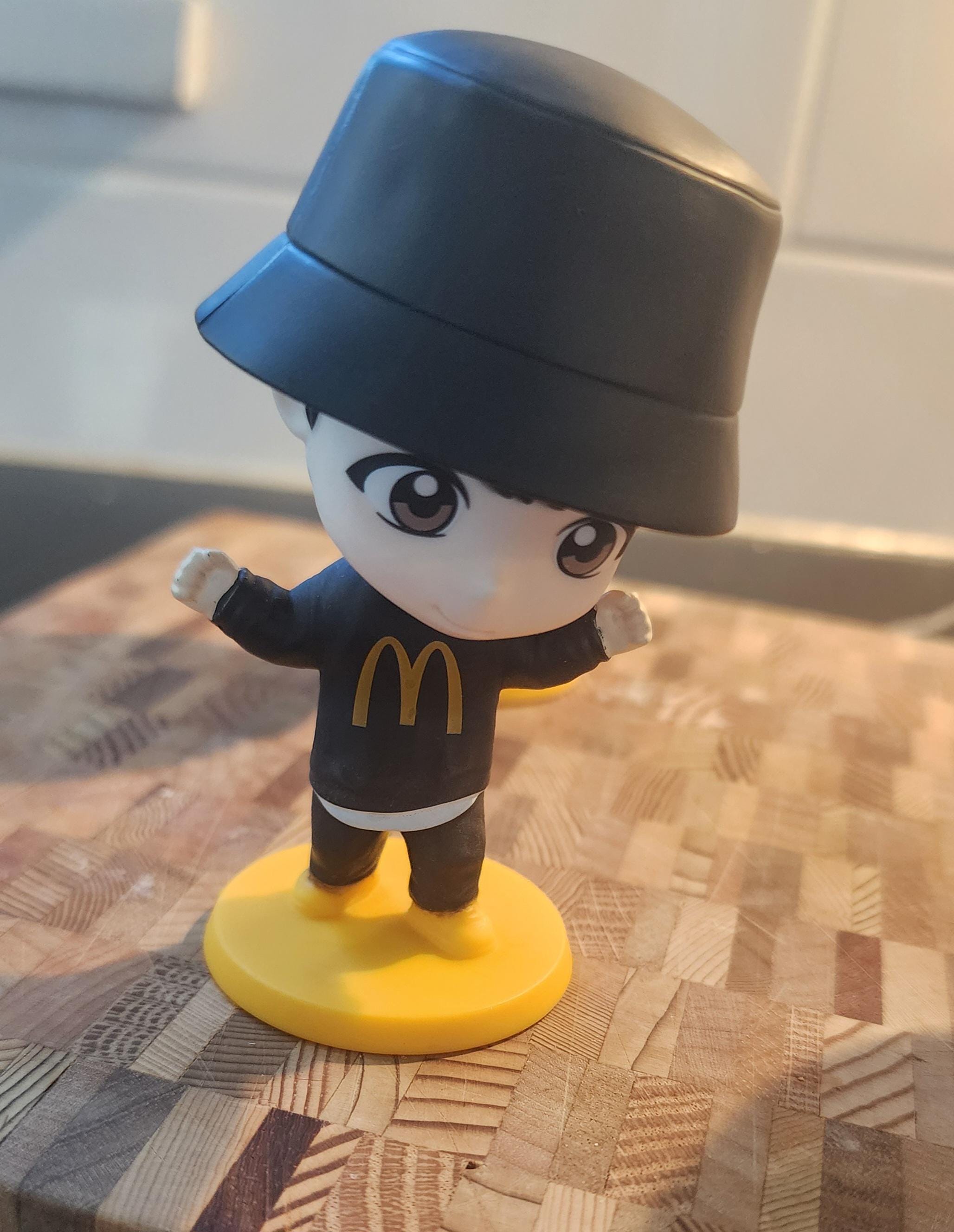 From the global McDonald’s × BTS collaboration, this bright and stylish J-Hope figure captures his fun personality in chibi form. A must-have for any BTS ARMY fan or K-Pop collector!