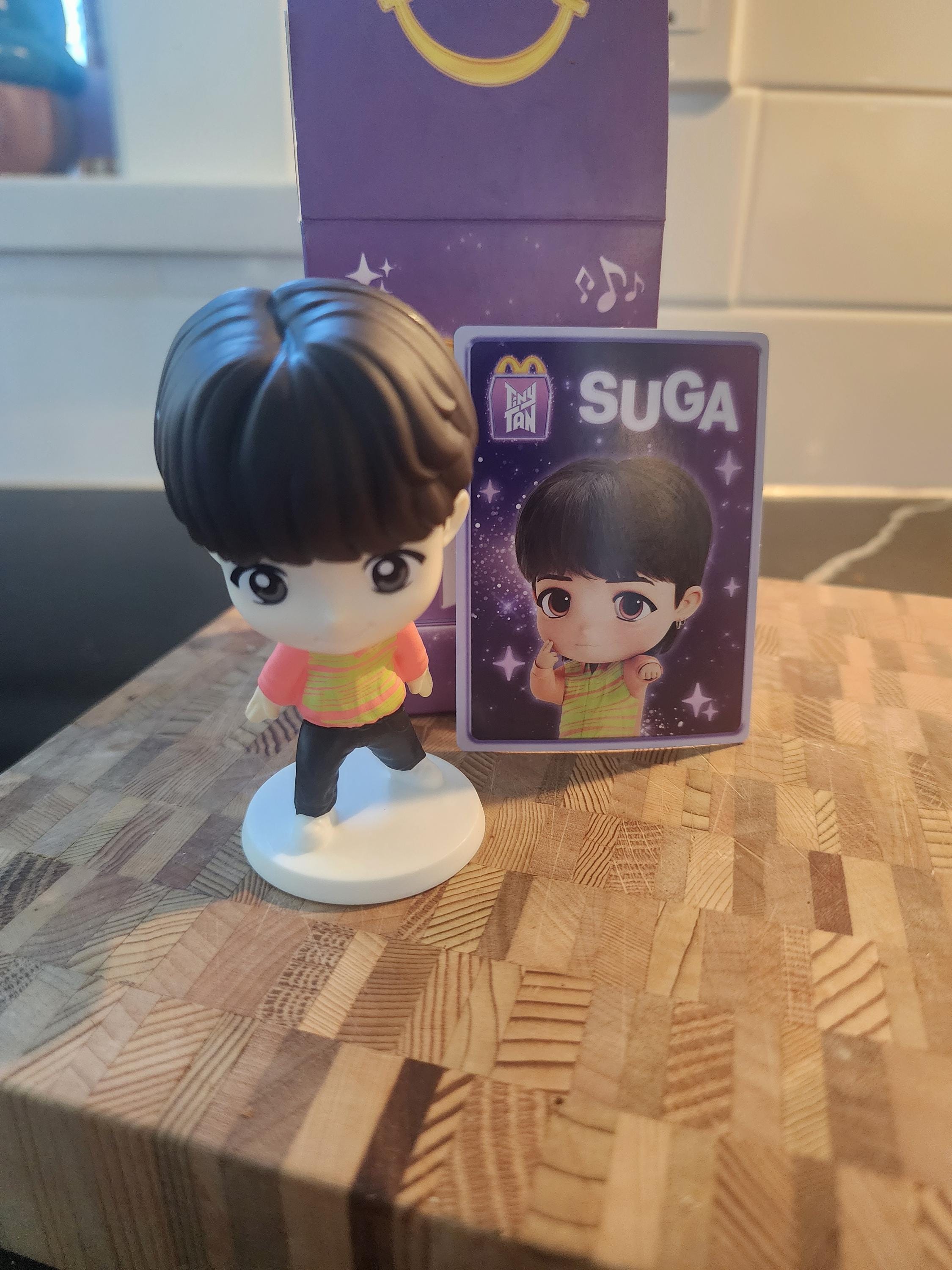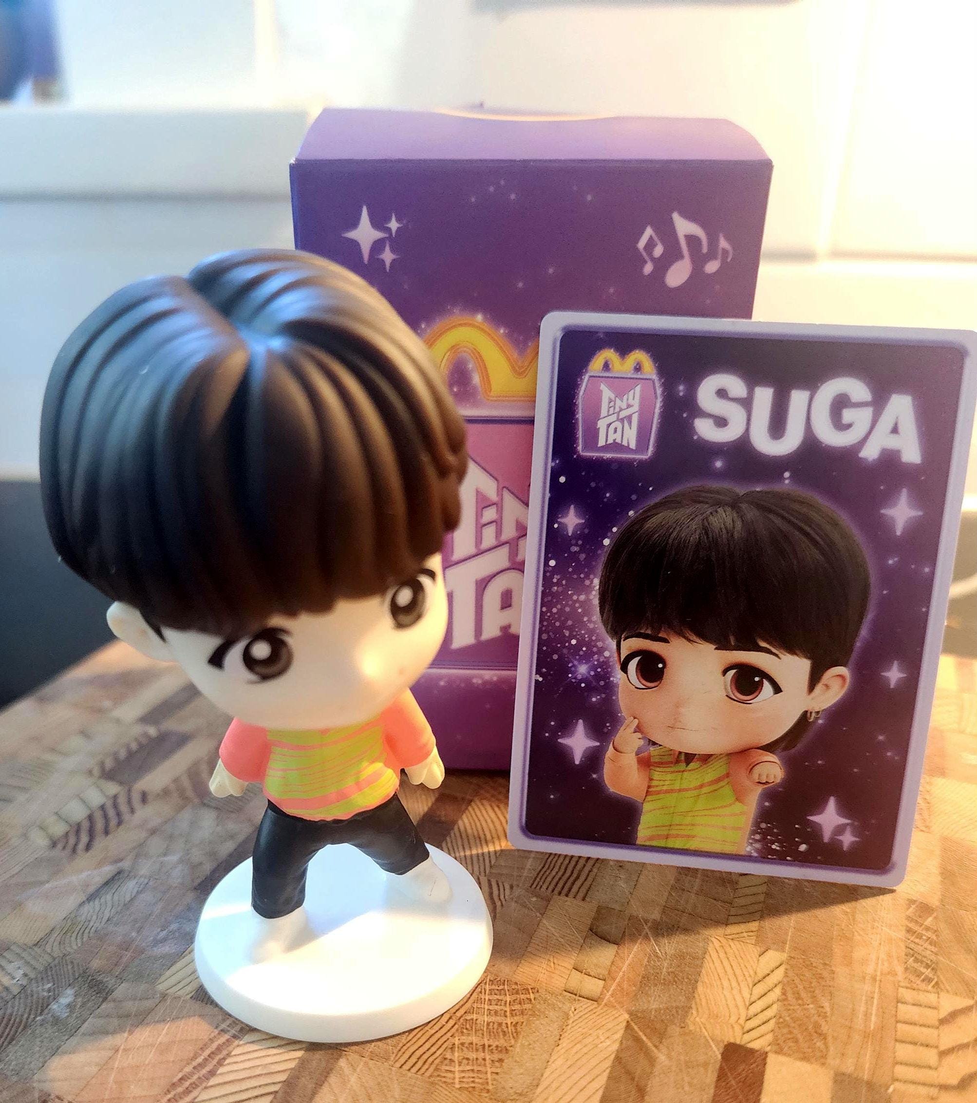 Official BTS TinyTAN McDonald’s Suga Figure (2025 Edition) — includes original box and collector card.