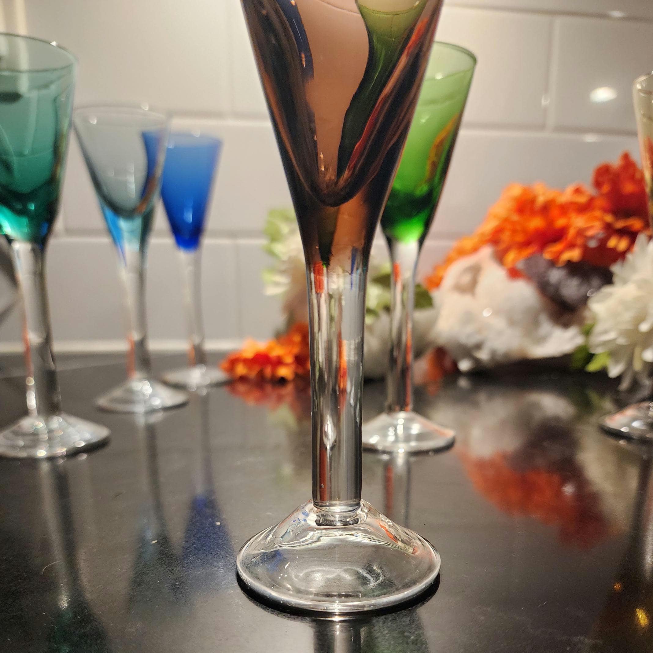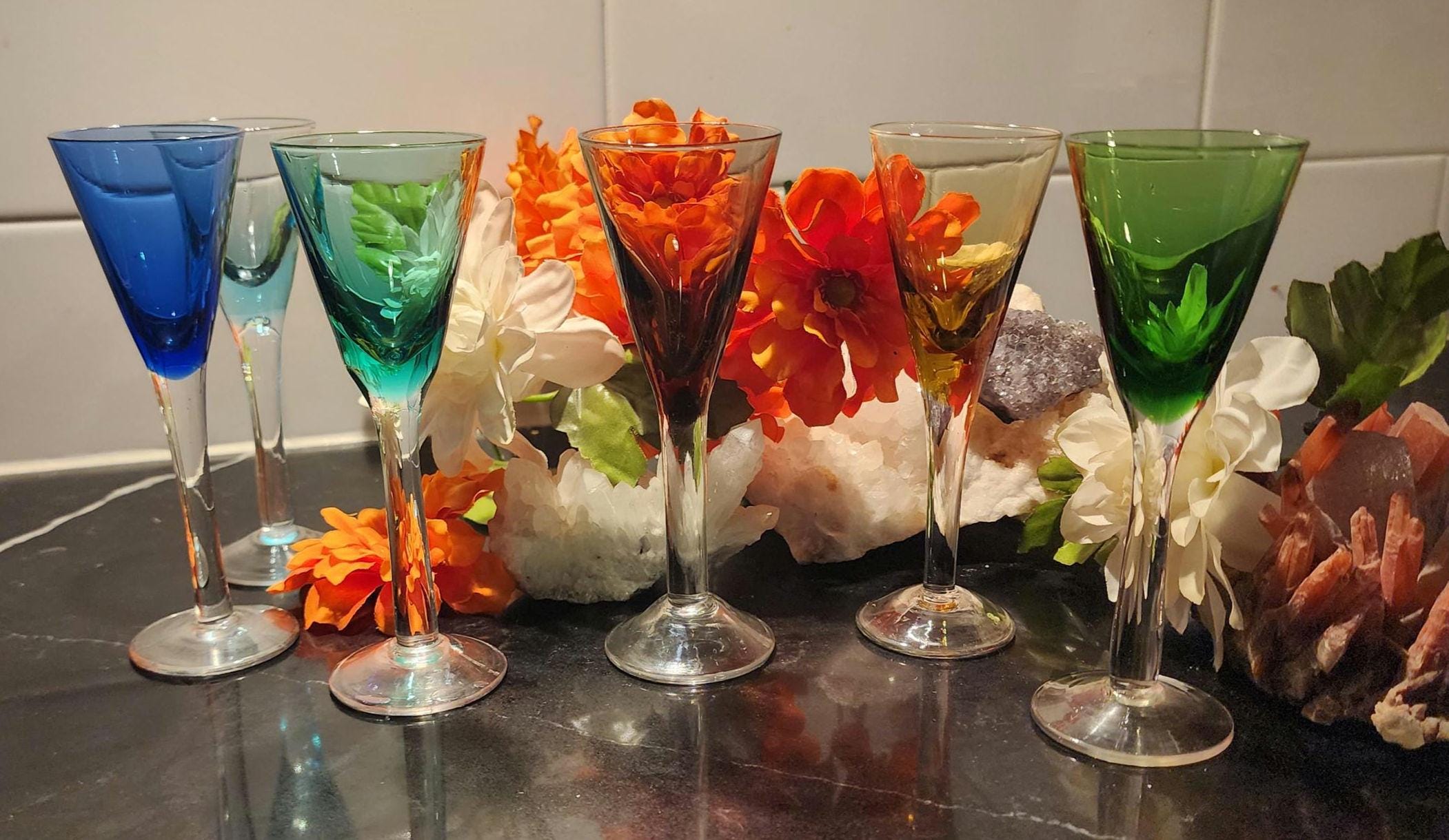 Mixed Set of 6 Vintage Hand Blown Cordial Glasses – Mid-Century Colored Barware