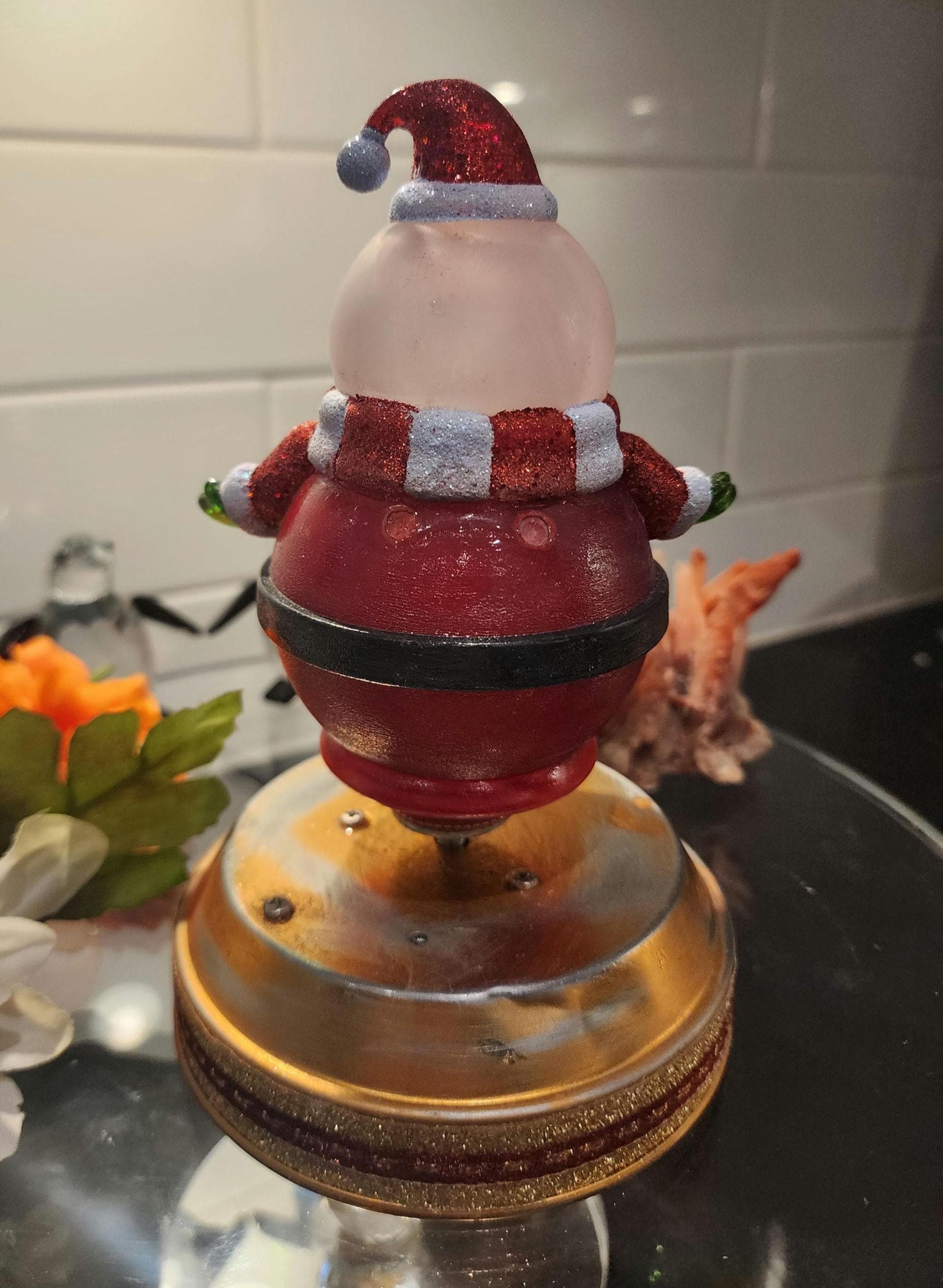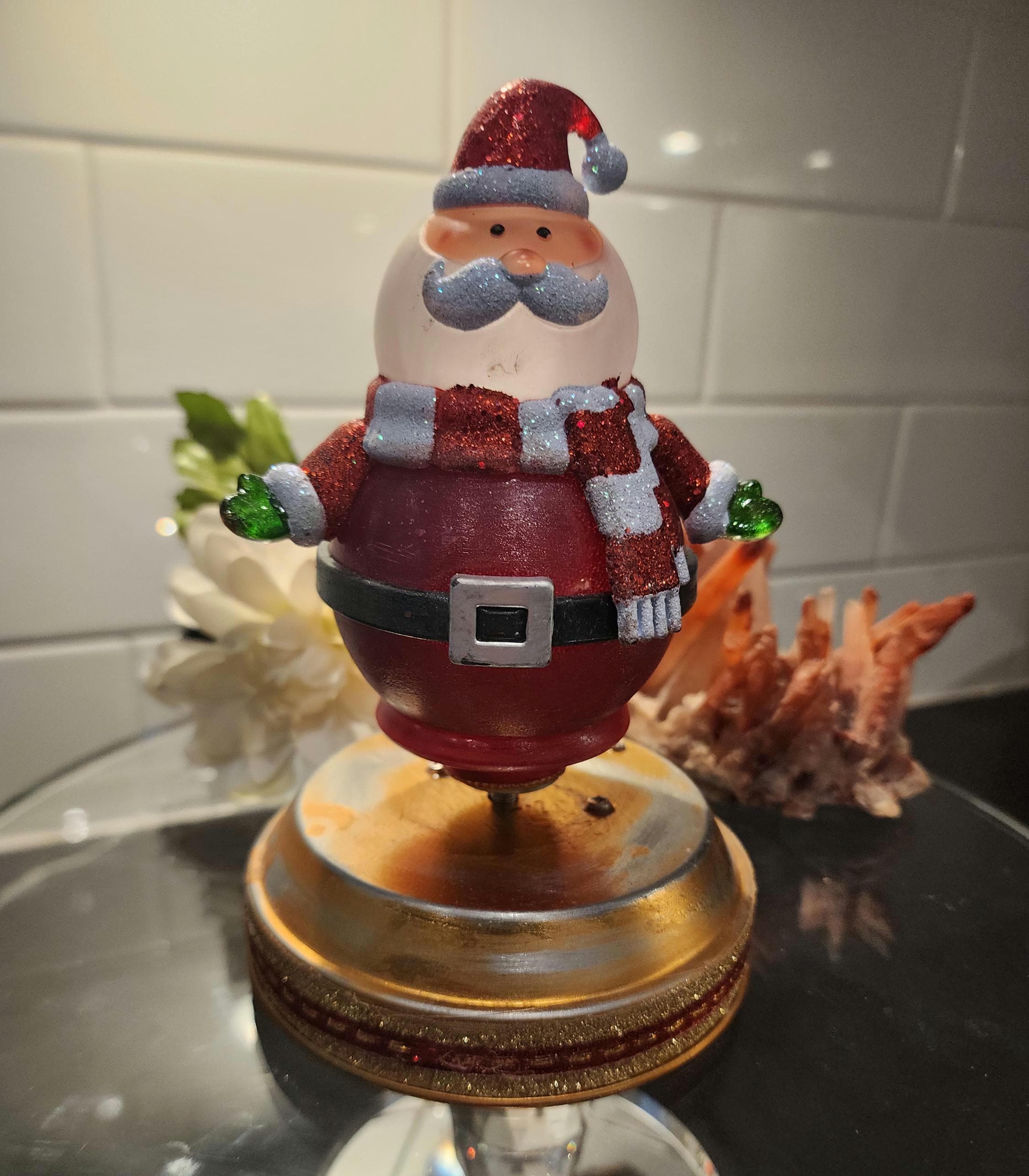 Rare 1960s Blown Glass Santa Music Box • Working Wind-Up Santa • Tin Base • Original Glitter Details • Vintage Christmas Decor