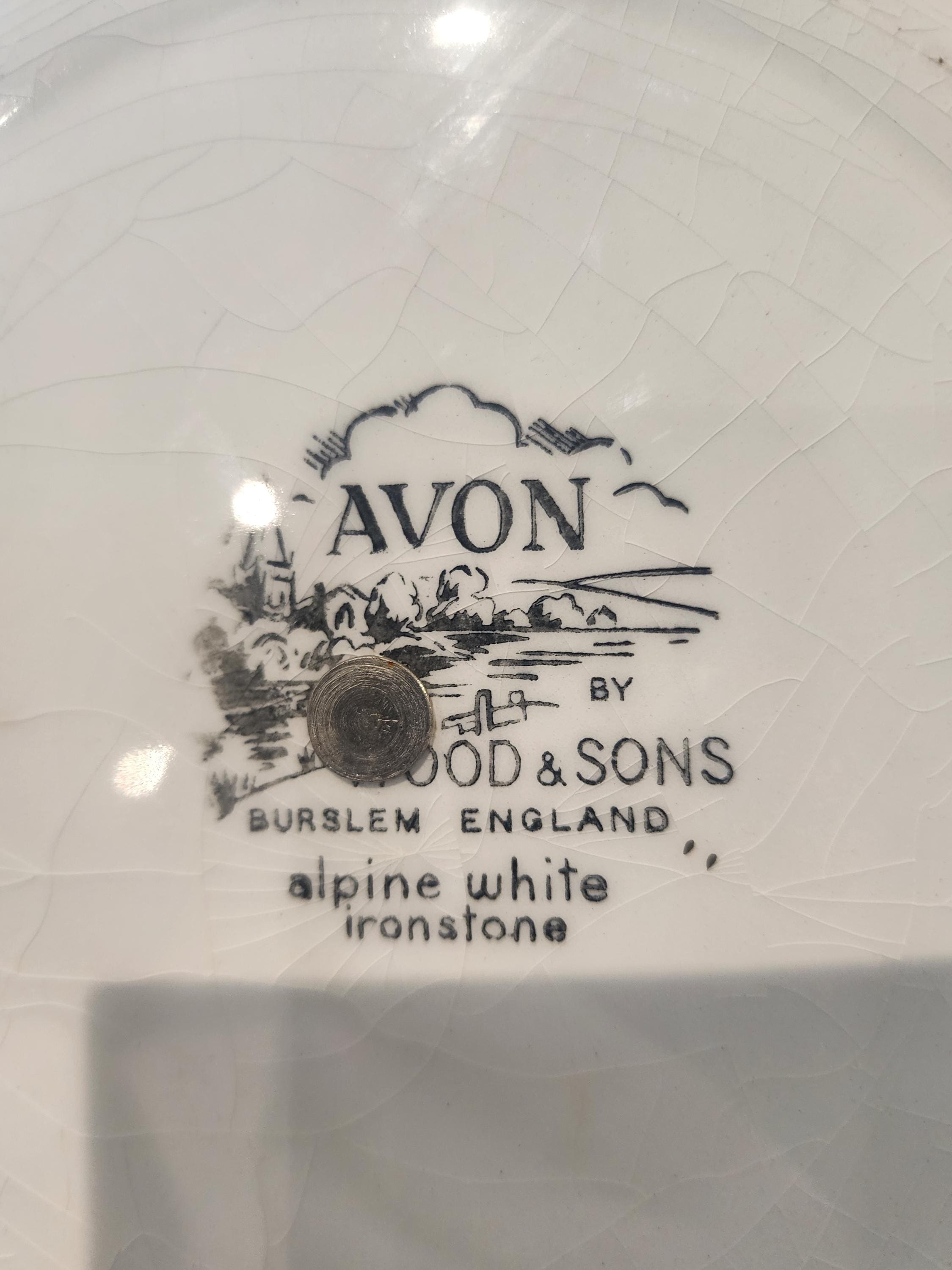 Vintage Wood & Sons “Avon” Alpine White Ironstone 2-Tier Cake Stand – Rare Cottagecore Floral – England Burslem